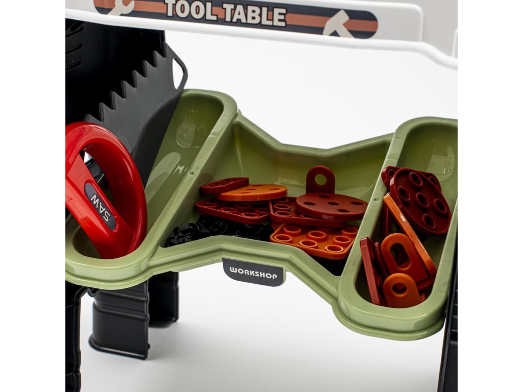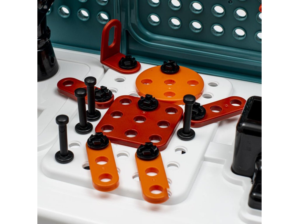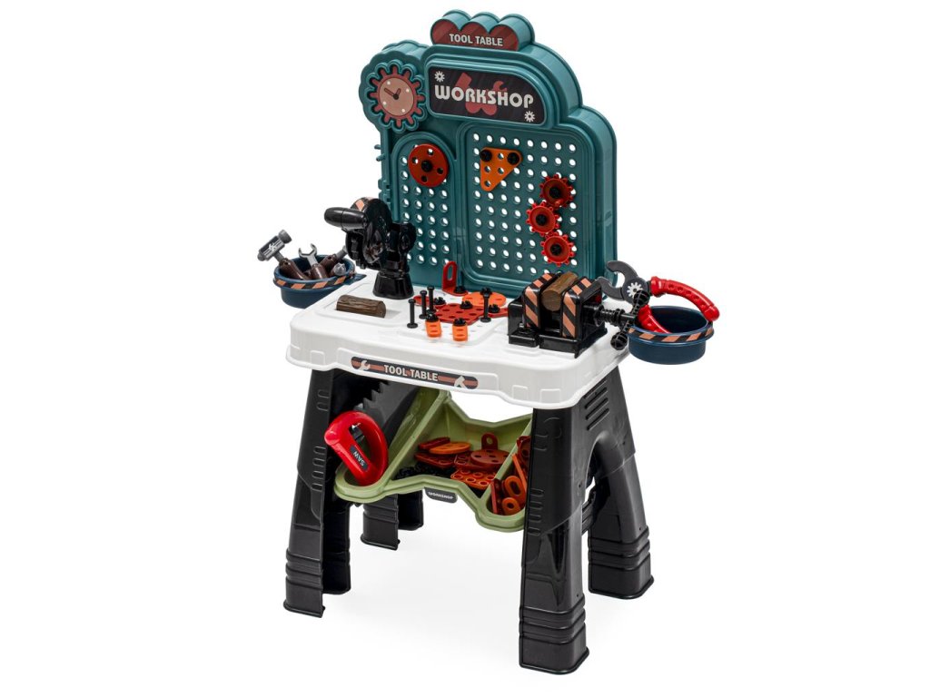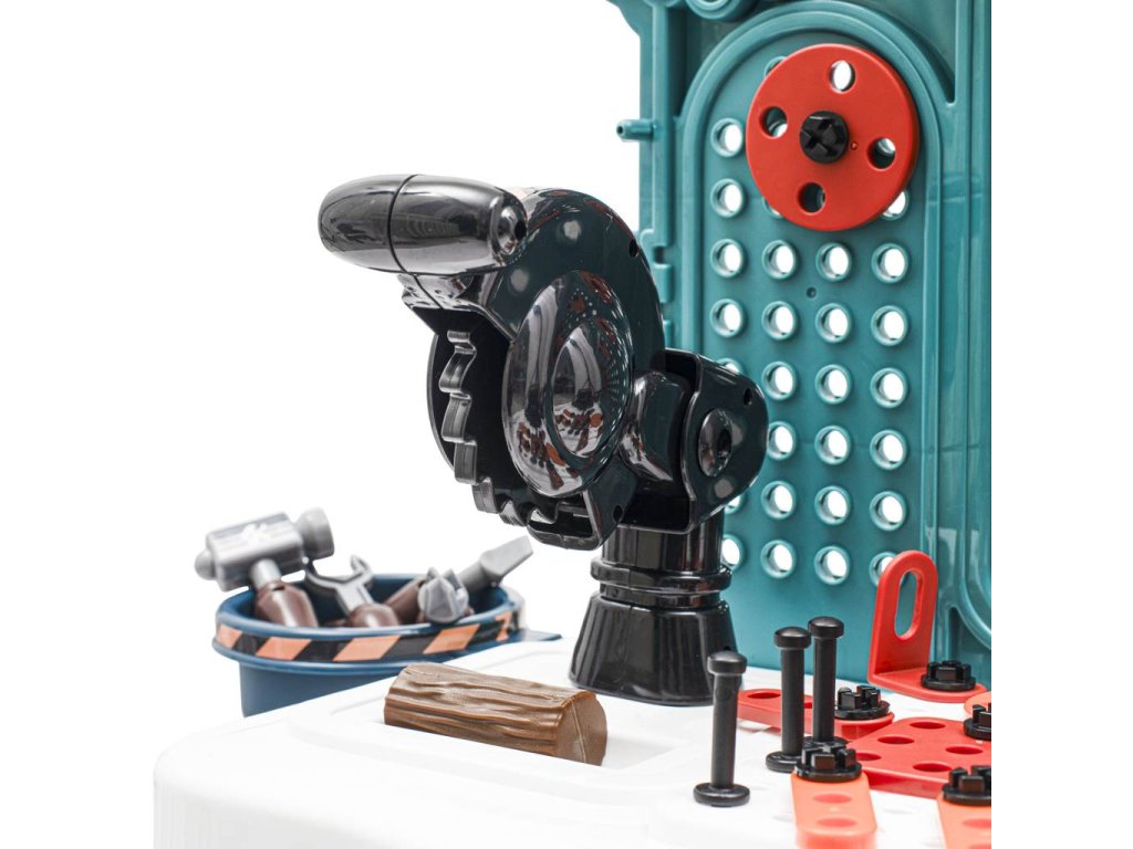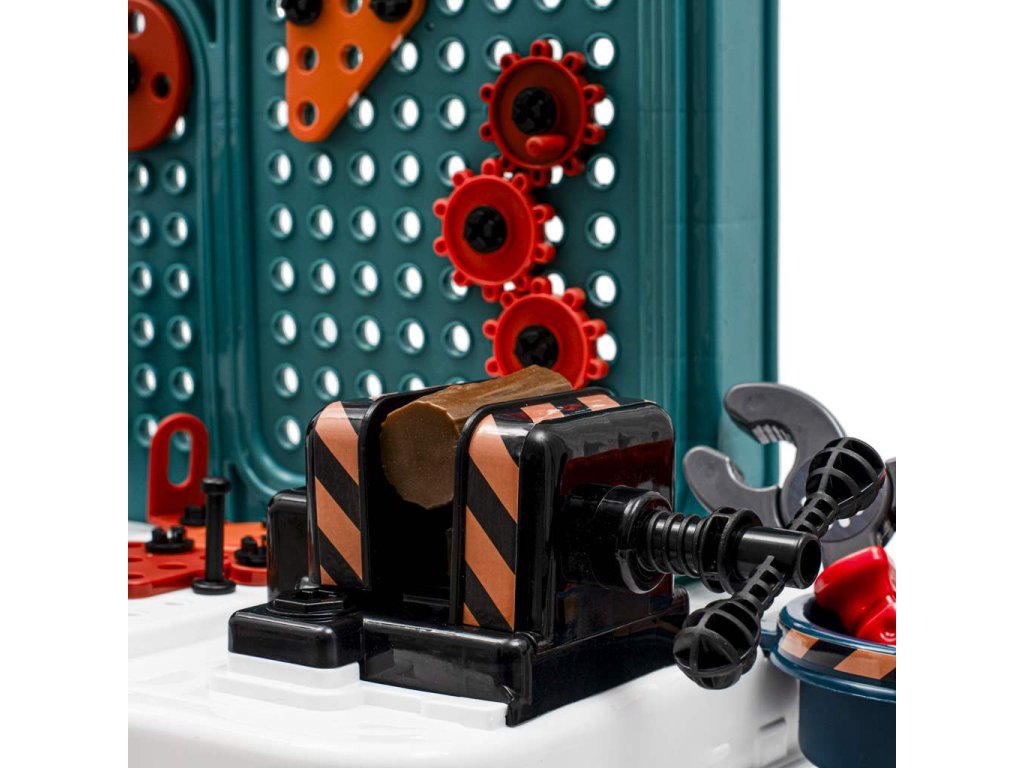 Detská dielňa obsahujúca 103 kusov náradia je skvelým nástrojom pre malých nadšencov do práce s drevom, montáže alebo remeselných činností. Dielňa obsahuje skrutky, pílu, zverák, kliešte a ďalšie.