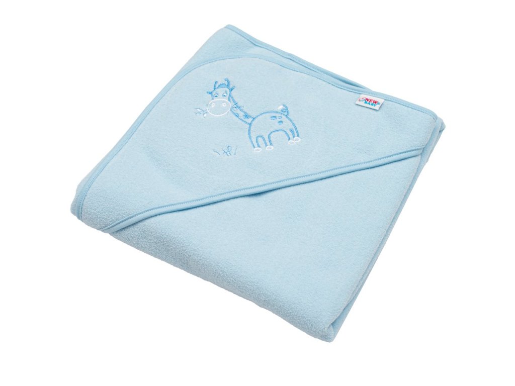 Detská froté osuška s výšivkou a kapucňou New Baby 80x80 modrá žirafka