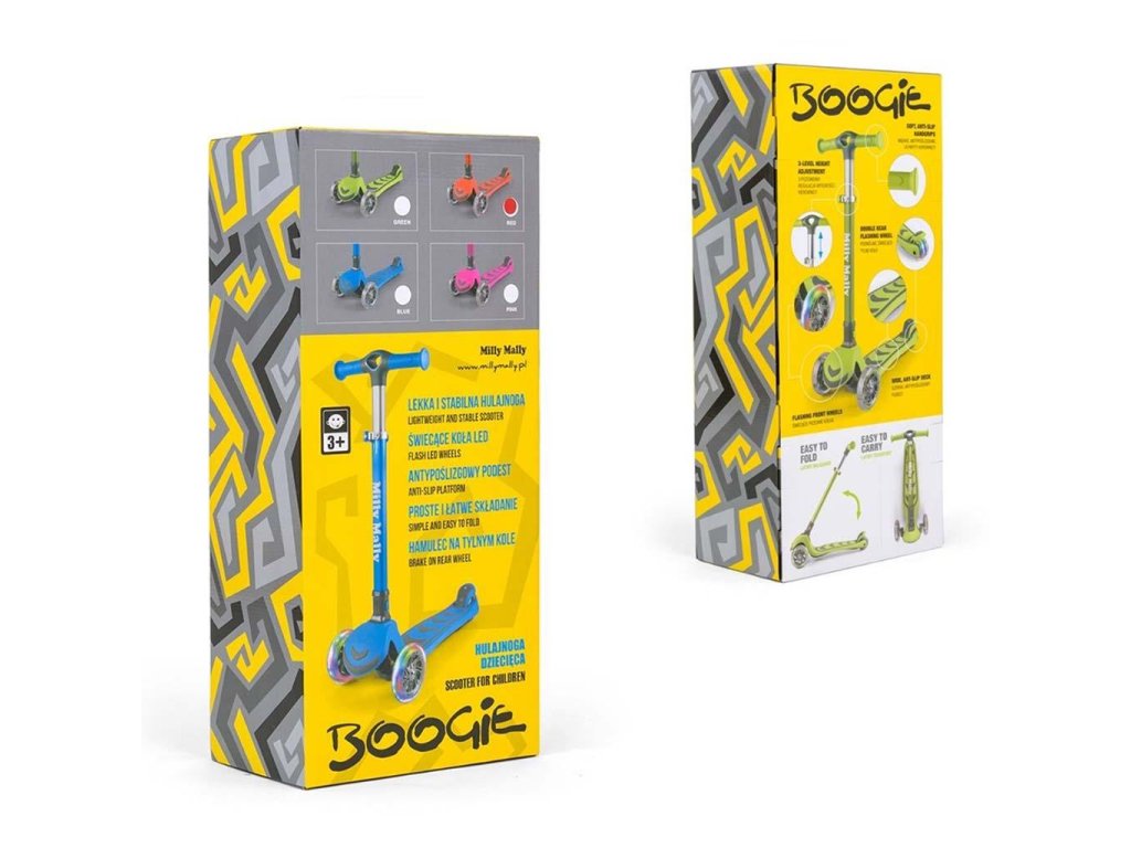 Aby sme vyhoveli potrebám našich malých pretekárov, vytvorili sme kolobežku BOOGIE SCOOTER. Je ideálnym riešením pre aktívne deti, ktoré majú rady pohyb. BOOGIA je vyrobený z kvalitných materiálov, je ideálny na prechádzky alebo vyčíňanie okolo domu. Ľahká a pritom pevná hliníková konštrukcia zaručí odolnosť a dlhú životnosť výrobku. Riadenie a zatáčanie funguje na princípe zmeny rovnováhy tela. Veľkou výhodou kolobežky sú 3 kolesá, ktoré poskytnú stabilitu a bezpečnosť. Zadné koliesko je navyše dvojité. Farebné a svietiace predné kolesá zaručia deťom počas jazdy ešte väčšiu zábavu.