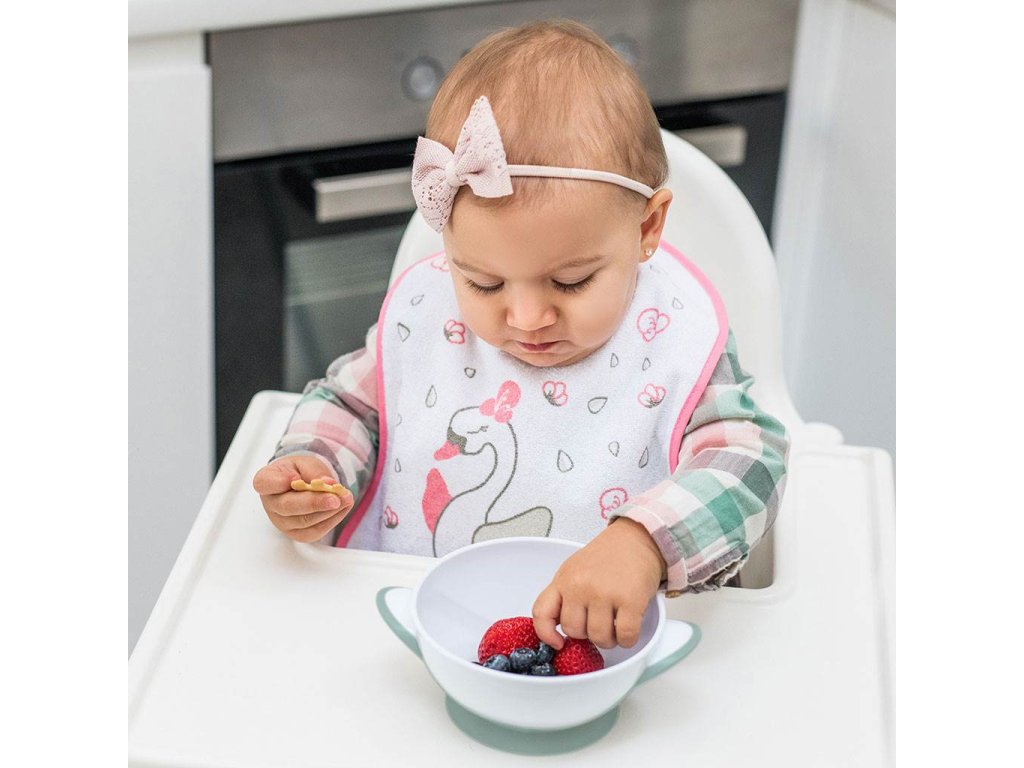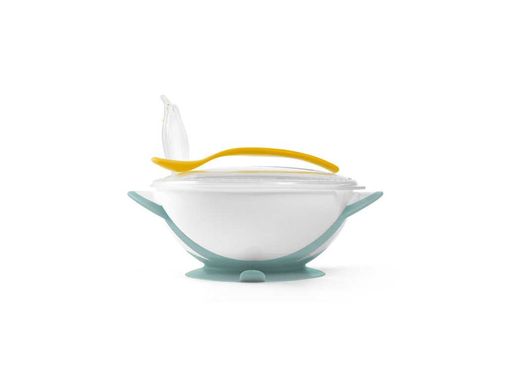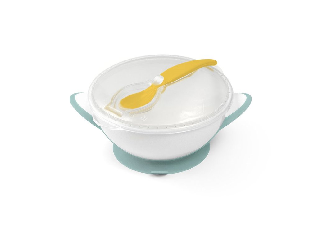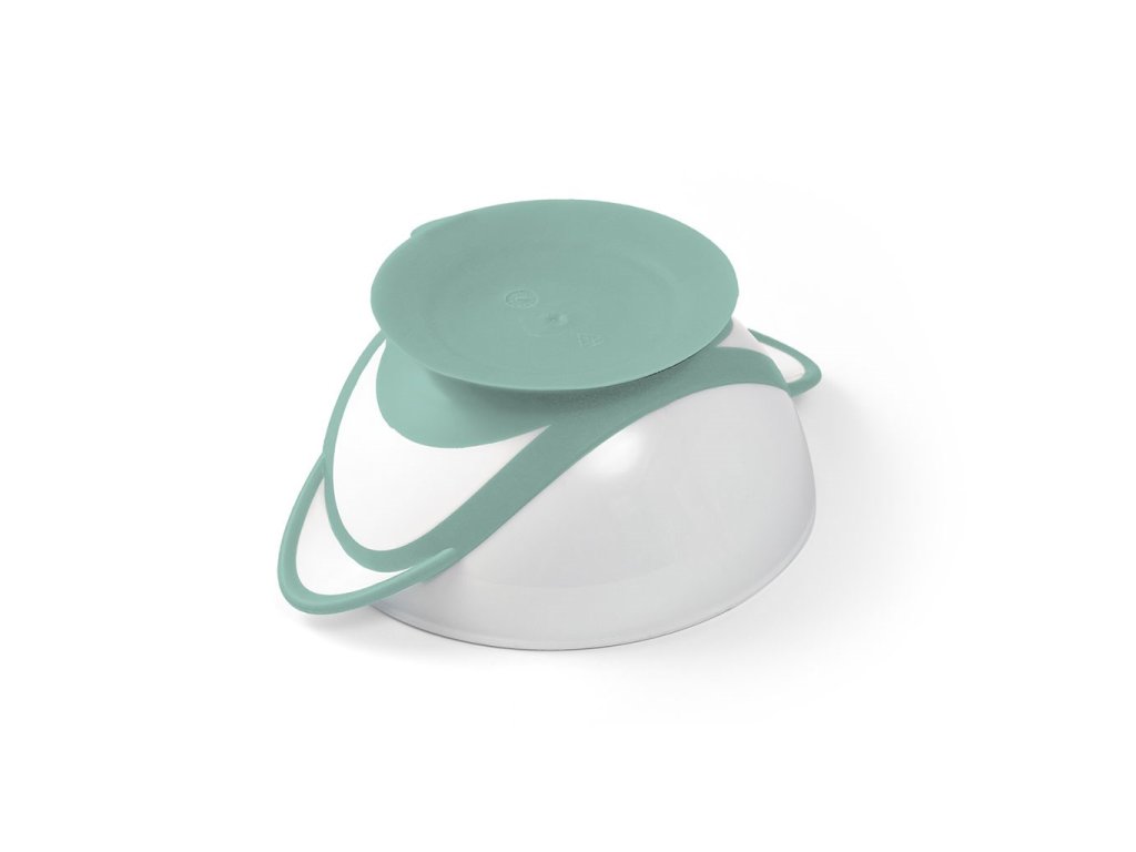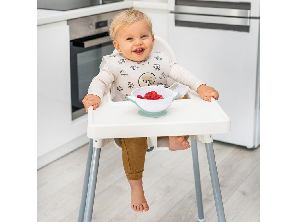 Detská miska s prísavkou a lyžičkou Baby Ono bielo-mätová