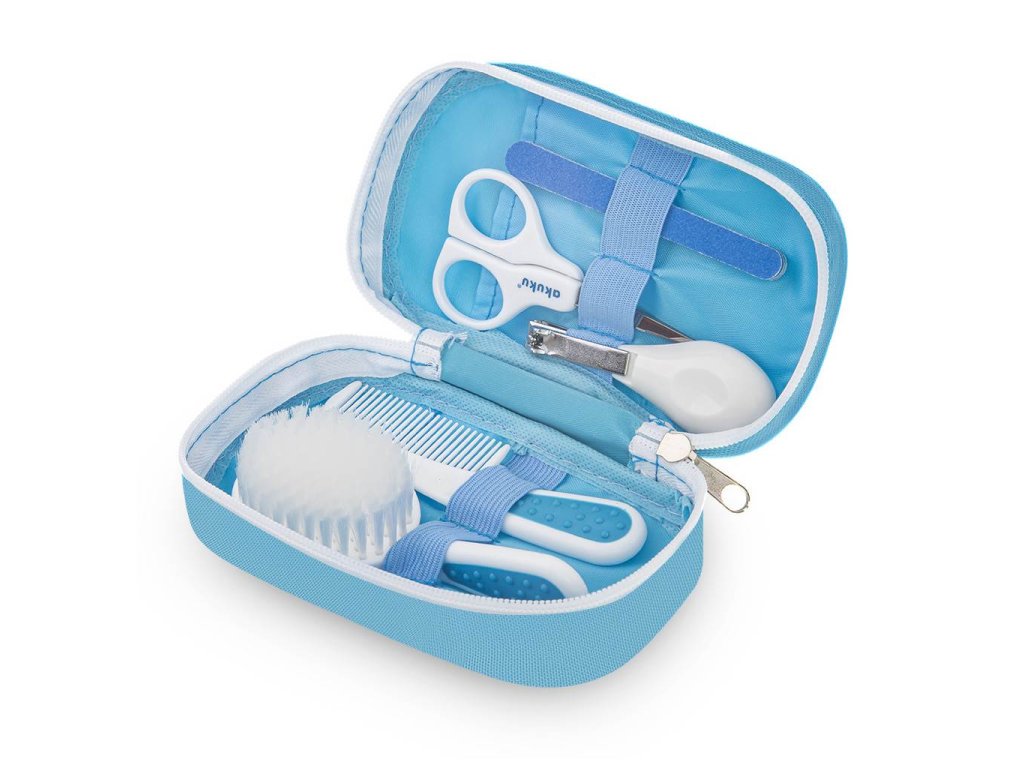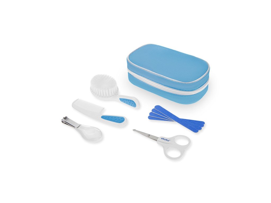 Detská sada na manikúru Akuku, ktorá umožňuje bezpečnú starostlivosť o detské nechtíky. Sada obsahuje nožnice, kefku a hrebeň na vlasy, klieštiky a štyri pilníky na nechty. Pilník vyhladí prípadné nerovnosti a zabráni sa prípadnému poškriabaniu. Zaoblené tvary nožníc znižujú riziko poranenia dieťaťa a klieštiky nechty skrátia. Celá manikúra je v krásnom textilnom púzdre. Vhodné pre deti od narodenia.Dodatočné parametre