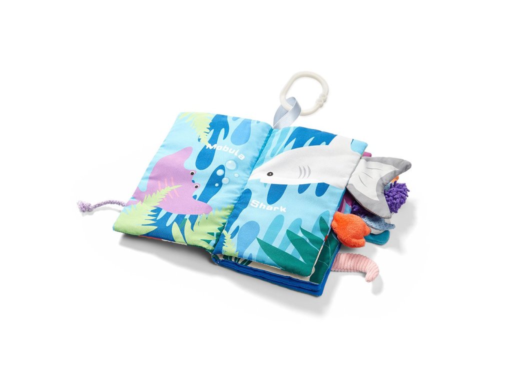 Senzorická knižka pre bábätká GO TO THE OCEAN získať nové zručnosti, od precvičovania úchopu, cez stimuláciu ďasien pomocou hryzátok s výstupkami, až po naučenie počítania a spoznávania rôznych povrchov a tvarov. Má jasné, kontrastné farby, ktoré rozvíjajú zrak, predstavivosť a schopnosť sústrediť sa.