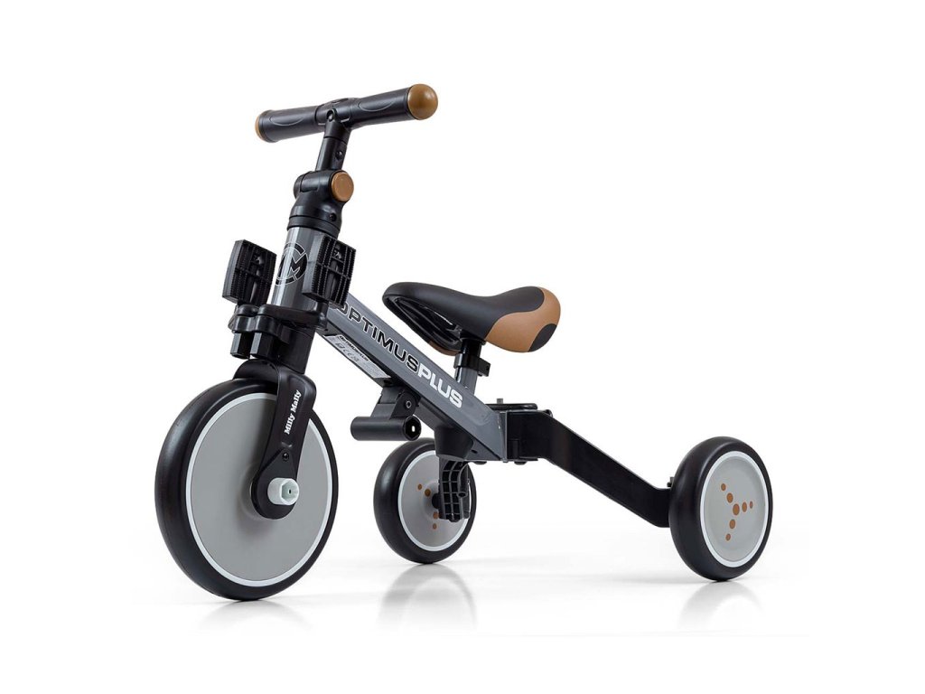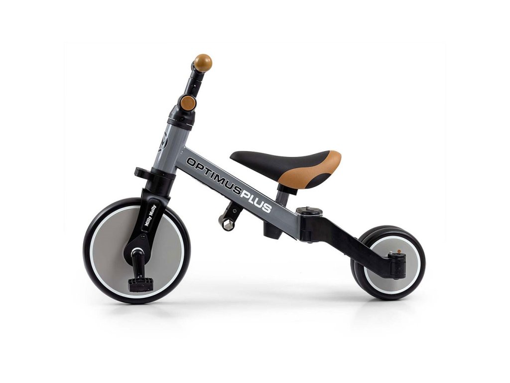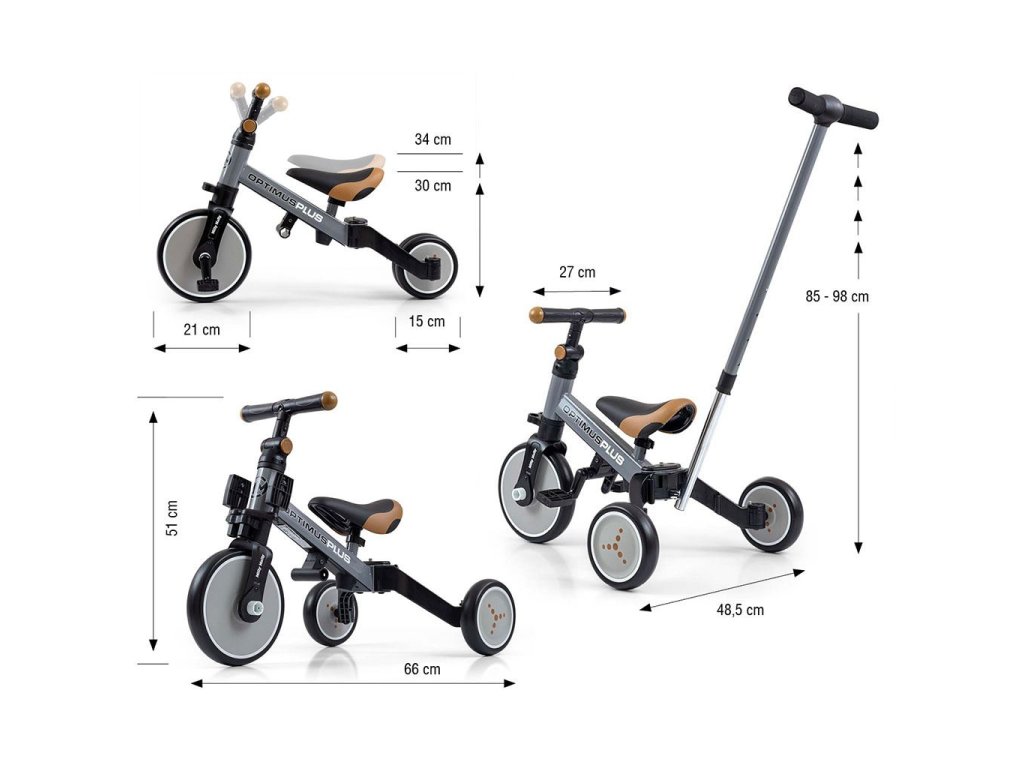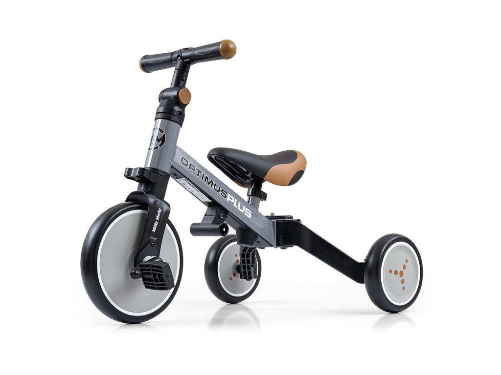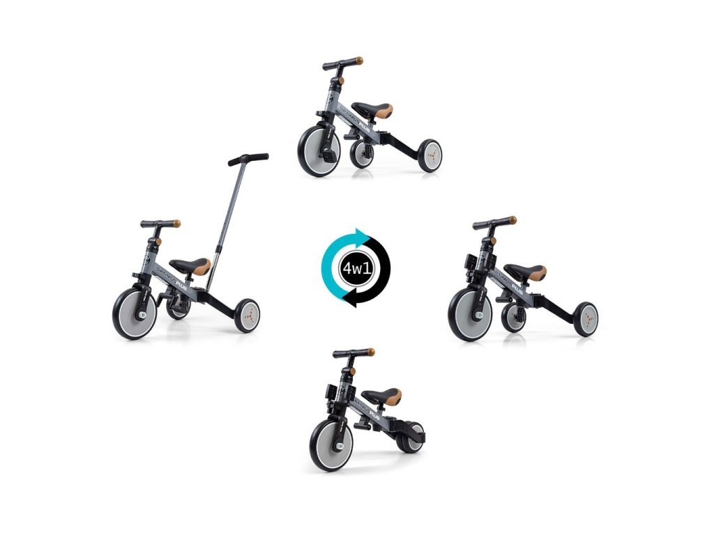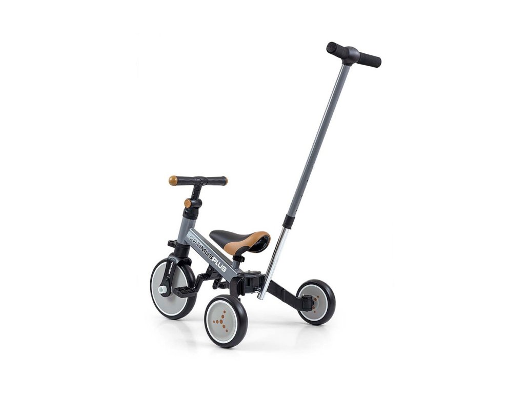 Detská trojkolka 4v1 Milly Mally Optimus Plus s vodiacou tyčou grey