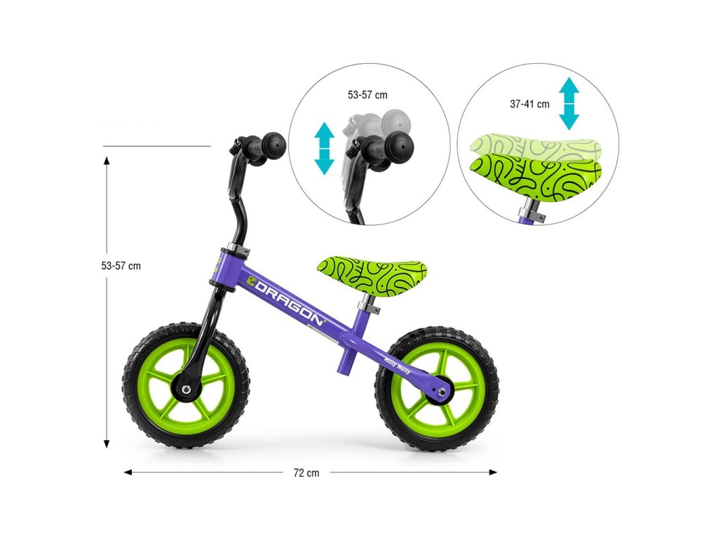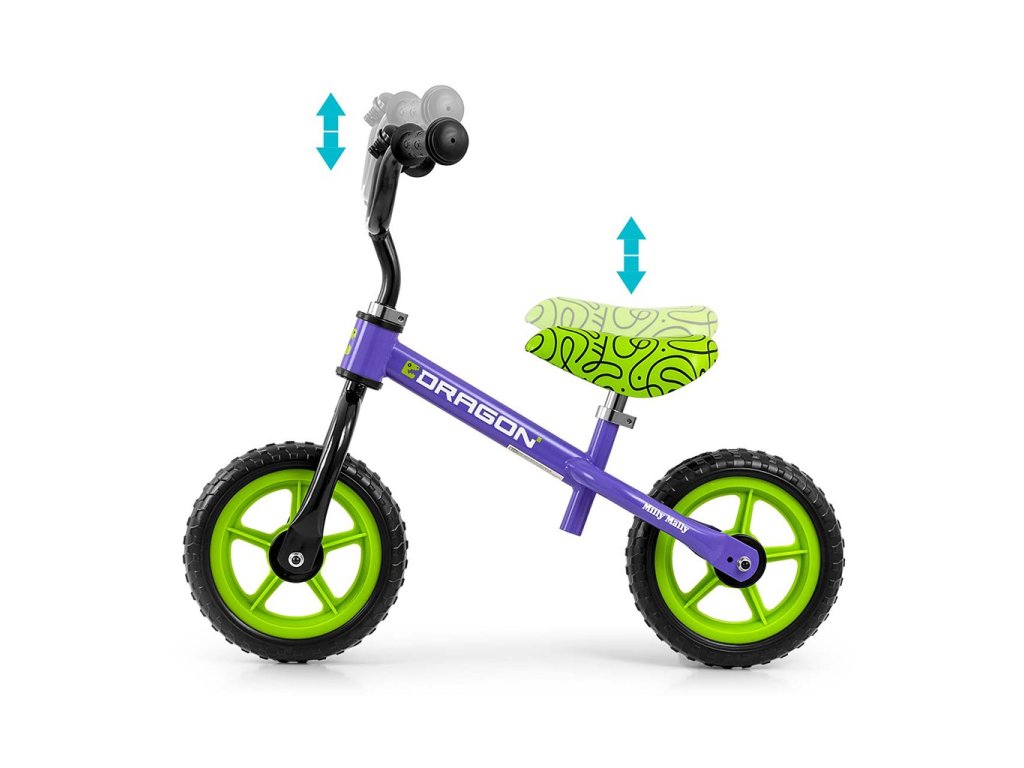 Odrážadlo DRAGON rozvíja motoriku, silu nôh, rovnováhu aj koordináciu, a skvele pripraví deti na jazdu na klasickom bicykli bez pomocných koliesok.