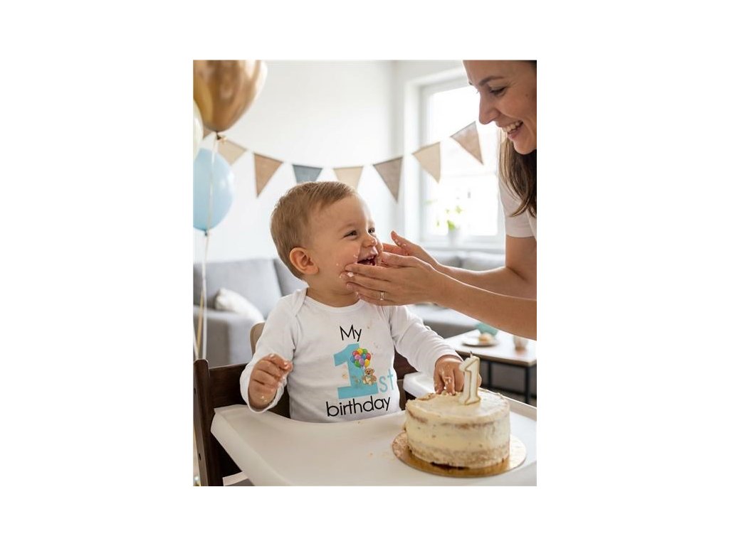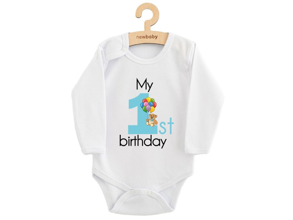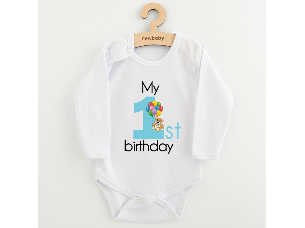 Detské body s potlačou New Baby My first birthday blue - veľ. 86 (12-18m)