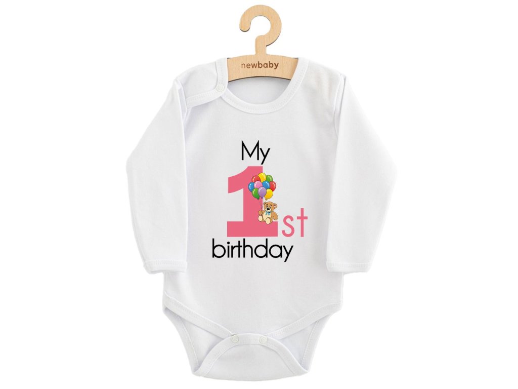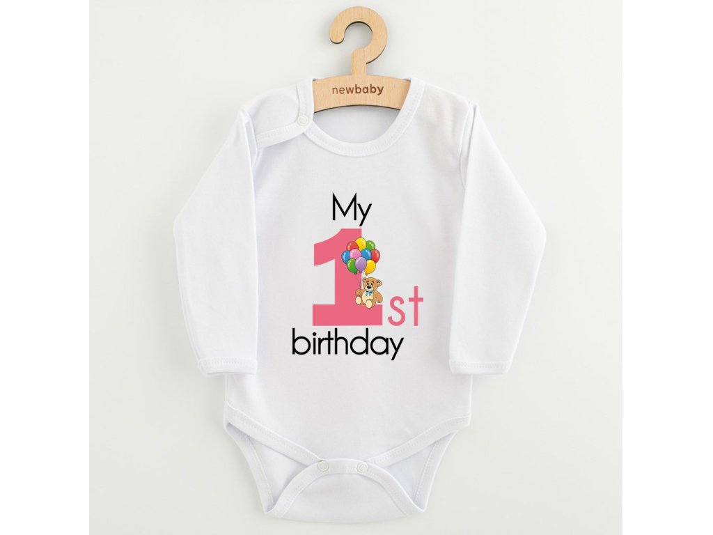 Detské body s potlačou New Baby My first birthday pink - veľ. 86 (12-18m)