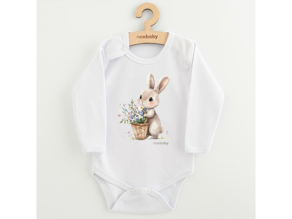 Detské body s potlačou New Baby Zajačik s kvetinkami - veľ. 74 (6-9m)