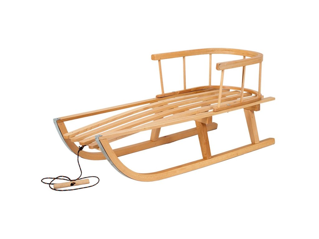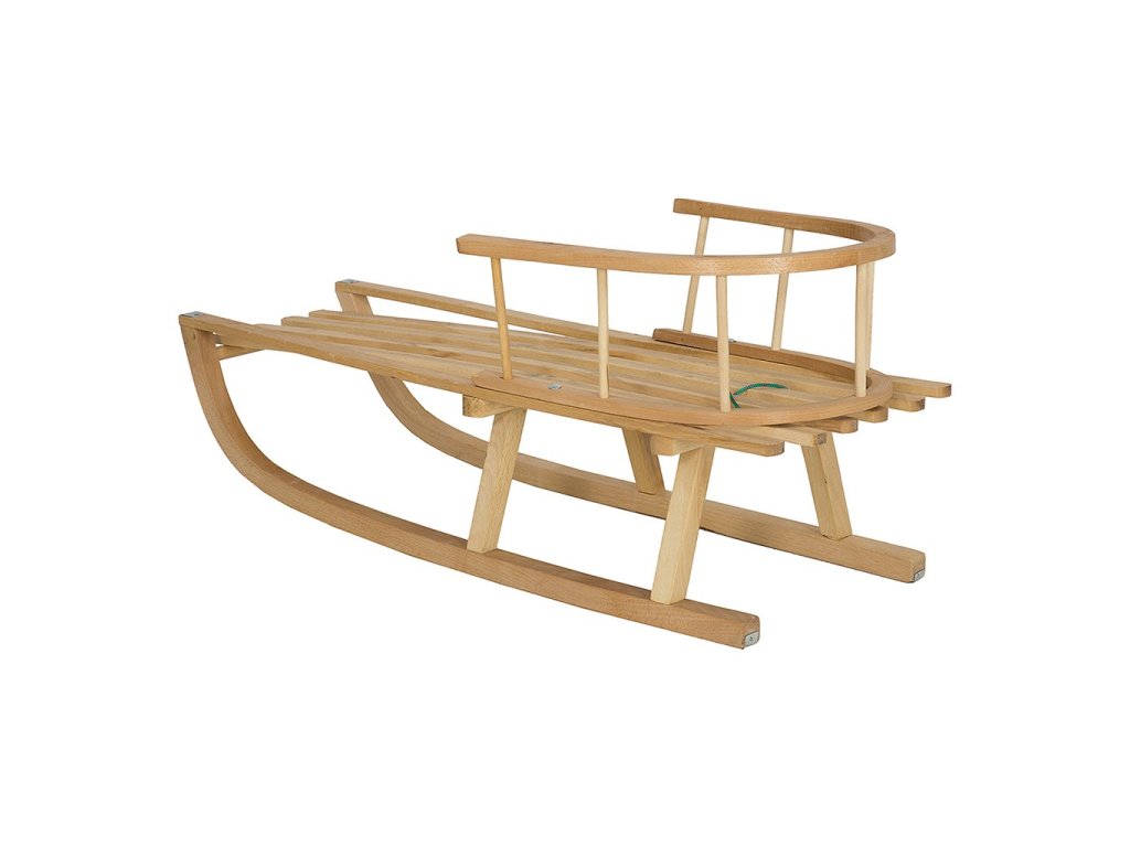 Detské celodrevené sánky s operadlom a povrázkom 87 cm