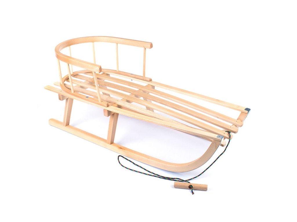 Detské drevené sánky s operadlom a šnúrou z kvalitného bukového dreva (tvrdé drevo odolné proti poškodeniu).