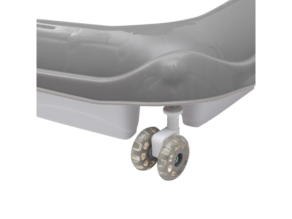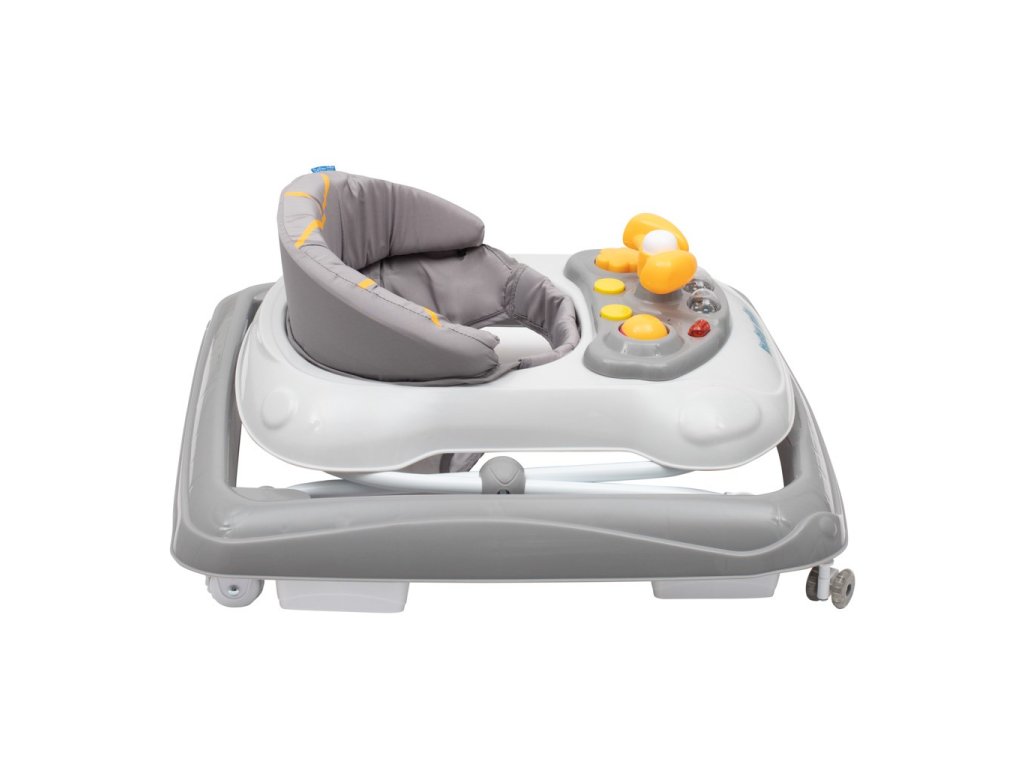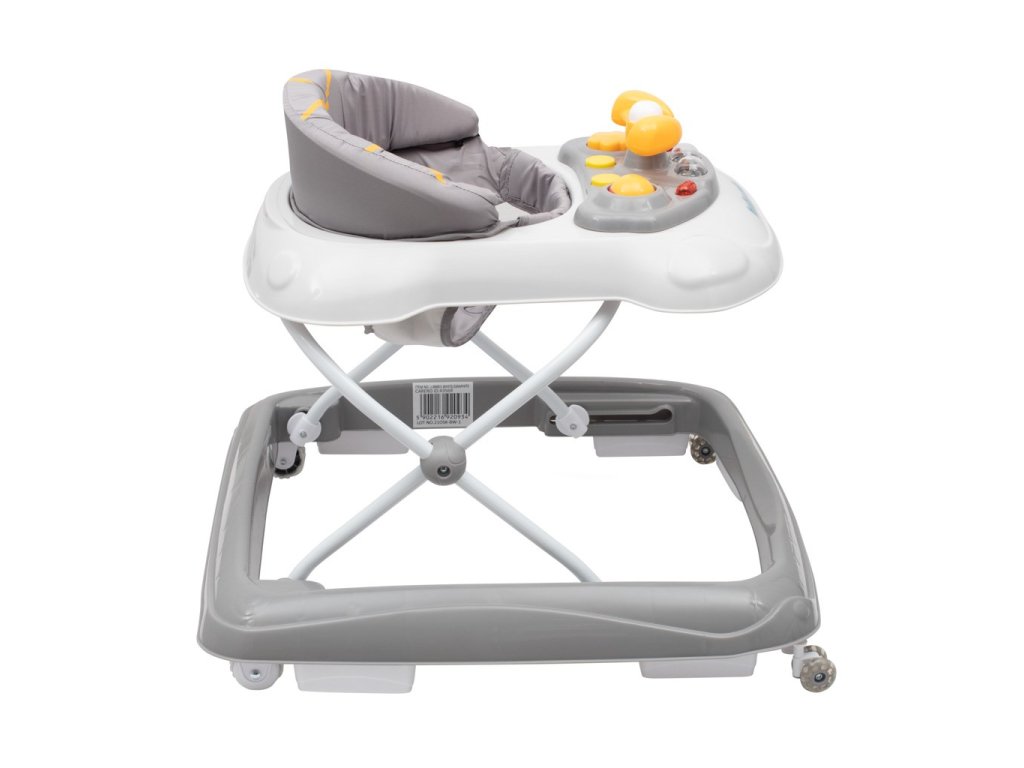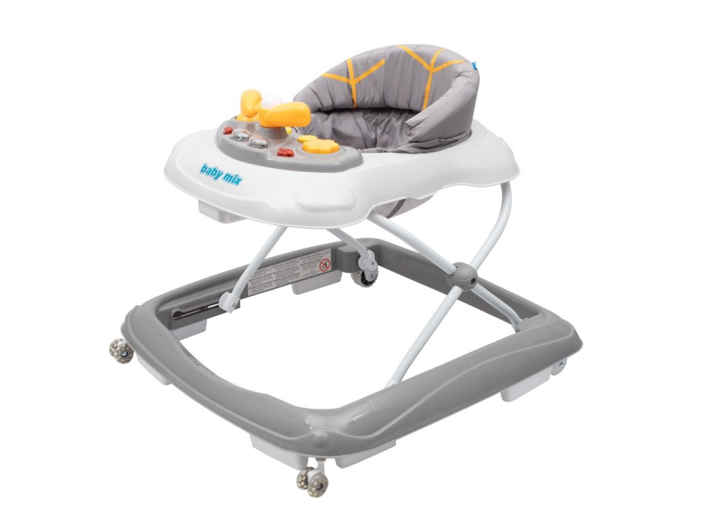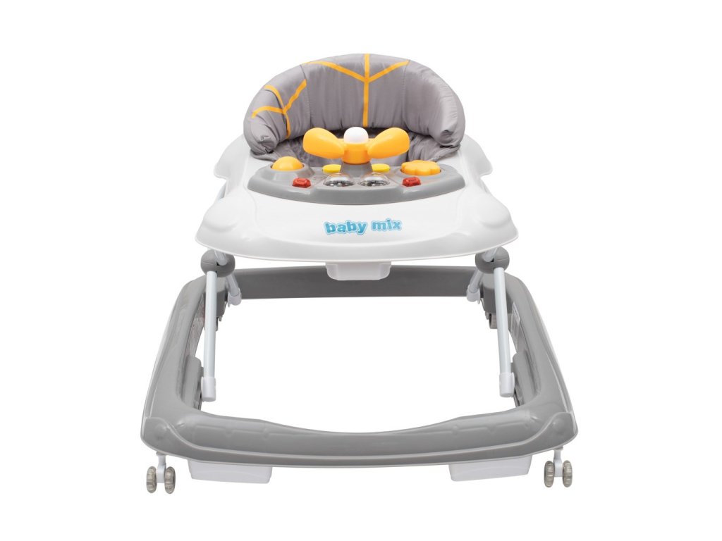 Multimediálne chodítko Baby Mix so silikónovými kolieskami. Chodítko je vybavené pohodlným ergonomicky tvarovaným sedadlom, ktoré zaisťuje správne držanie chrbtice. Multimediálny panel obsahuje rôzne svetelné efekty, trúbiaci volant, ktorým je možné otáčať, tlačidlá pre prehrávanie melódií a dve svetlá. Krásne chodítko s hračkami očarí malých objaviteľov a umožní im hrať sa ešte dlhšie. Chodítko je vybavené špeciálnym systémom proti prevráteniu, ktorý zaistí Vášmu dieťaťu pohodlie a bezpečnosť.