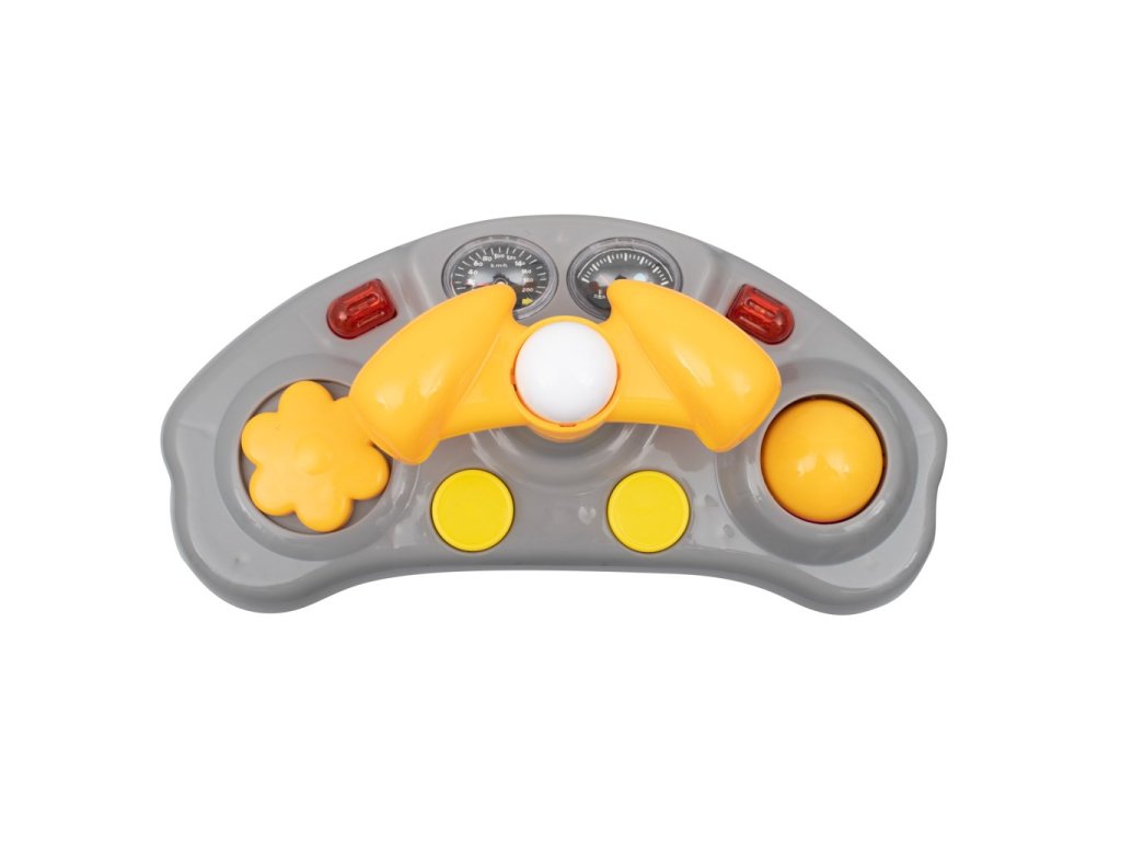 - Multimediálny panel so zvukovými a svetelnými efektmi, 12 hracích melódií, klaksón s otočným volantom (napájané 2x1,5V AA batériami - nie sú súčasťou balenia)