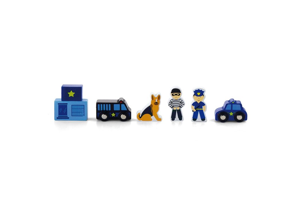 Sada figúrok obsahuje - väzobnú väznicu, autobus, psa, väzňov, policajta, policajné auto.