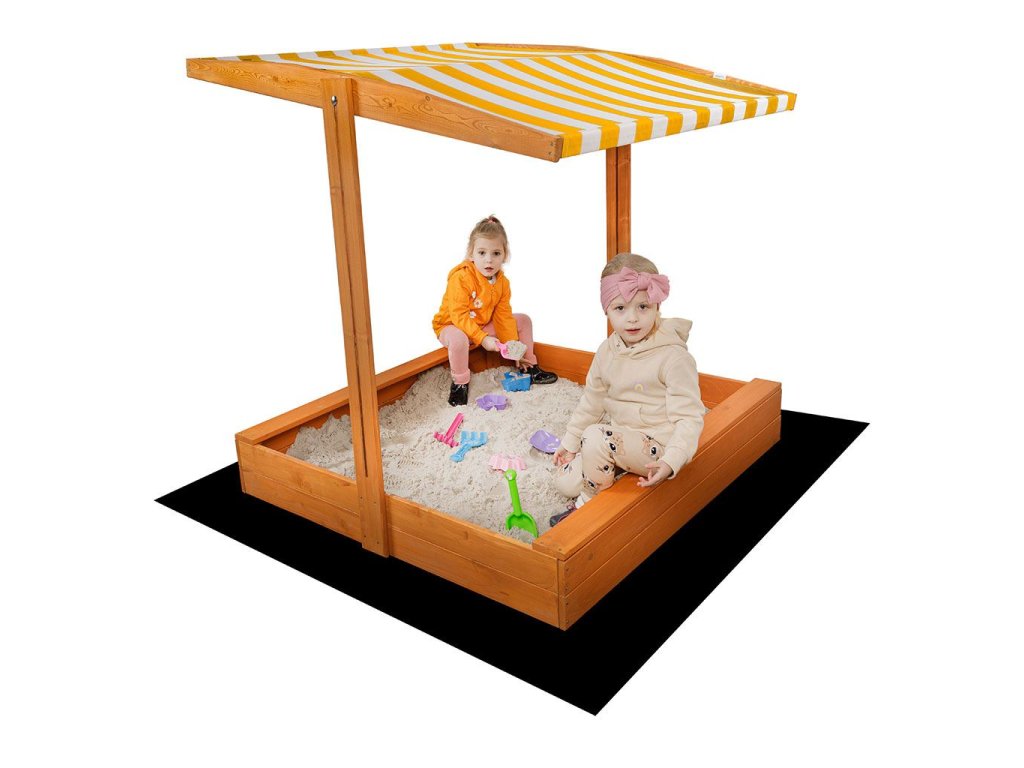 Detské drevené pieskovisko so strieškou Baby Mix 120x120 cm žlto-biele