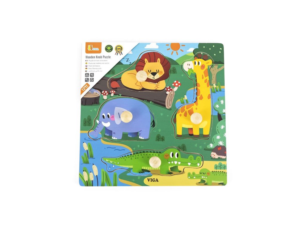 Detské drevené puzzle s úchytmi Viga Divoké zvieratá 4 ks