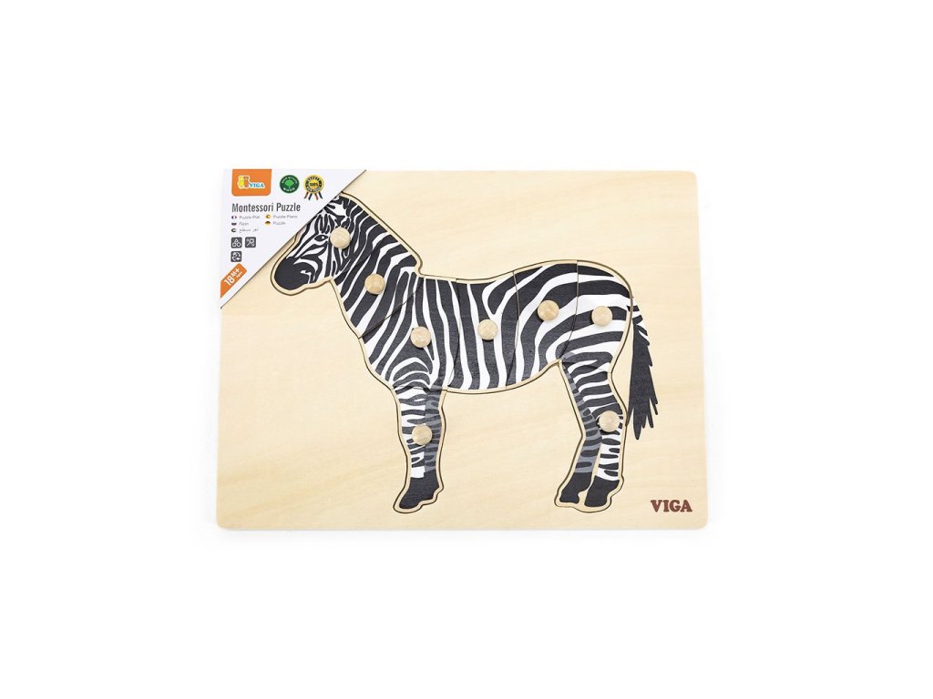 Detské drevené puzzle vkladačka Montessori Viga Zebra