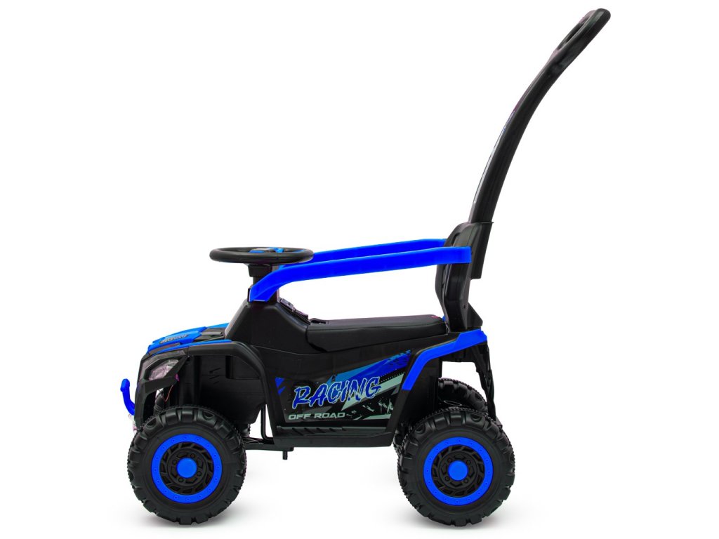 Detské elektrické odrážadlo Baby Mix Ruggy s vodiacou tyčou modré
