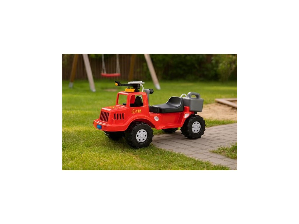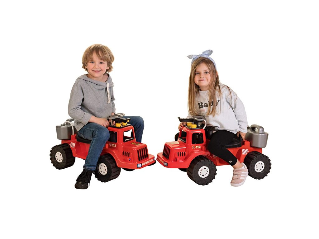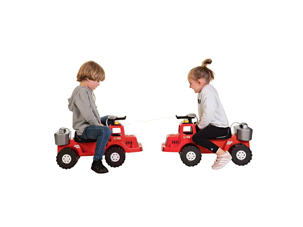 Hasičské odrážadlo Bayo má na kabíne otáčacie vodné delo, ku ktorému je napojený zásobník na vodu. Po naplnení vodou tak môže váš malý hasič pumpovať a hasiť „požiar“ doma alebo na záhrade. Pod sedadlom sa nachádza úložný priestor. Otvorme svet detskej fantázie a pomáhajme im rozvíjať ich motorické schopnosti.