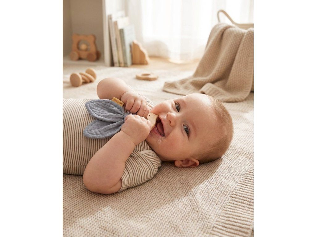 Hryzátko s mušelínovou plienkou je ideálna sada, keď sa dieťaťu prerezávajú zúbky. Hryzátko je vyrobené z bukového dreva šetrného k stredu a mäkkej mušelínovej látky. Úplne bezpečné pre deti prináša upokojujúcu úľavu pri prerezávaní zúbkov. Hryzátko je možné použiť aj ako hračku pre bábätká. Hryzátko sa dokonale hodí k našim ďalším mušelínovým výrobkom a vytvára tak krásnu sadu, ktorú je možné darovať na detskú oslavu.