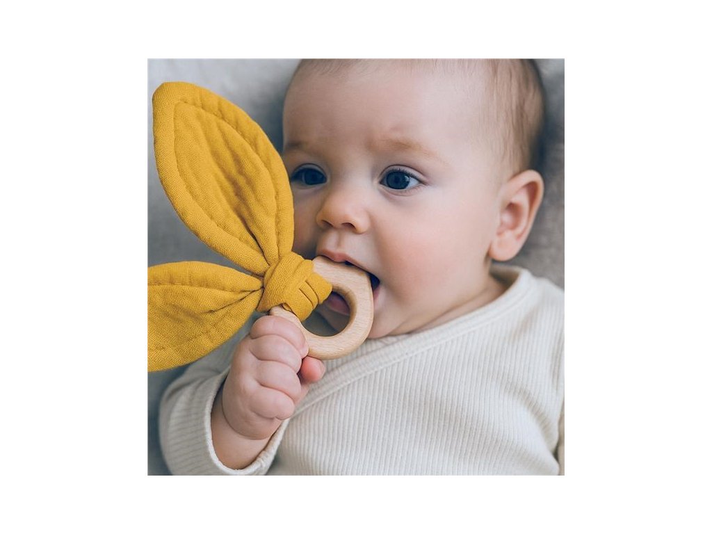 Hryzátko s mušelínovou plienkou je ideálna sada, keď sa dieťaťu prerezávajú zúbky. Hryzátko je vyrobené z bukového dreva šetrného k stredu a mäkkej mušelínovej látky. Úplne bezpečné pre deti prináša upokojujúcu úľavu pri prerezávaní zúbkov. Hryzátko je možné použiť aj ako hračku pre bábätká. Hryzátko sa dokonale hodí k našim ďalším mušelínovým výrobkom a vytvára tak krásnu sadu, ktorú je možné darovať na detskú oslavu.
