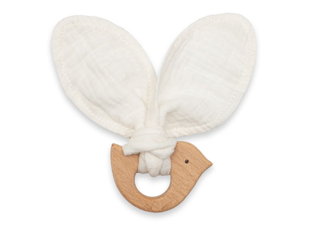 Hryzátko s mušelínovou plienkou je ideálna sada, keď sa dieťaťu prerezávajú zúbky. Hryzátko je vyrobené z bukového dreva šetrného k stredu a mäkkej mušelínovej látky. Úplne bezpečné pre deti prináša upokojujúcu úľavu pri prerezávaní zúbkov. Hryzátko je možné použiť aj ako hračku pre bábätká. Hryzátko sa dokonale hodí k našim ďalším mušelínovým výrobkom a vytvára tak krásnu sadu, ktorú je možné darovať na detskú oslavu.