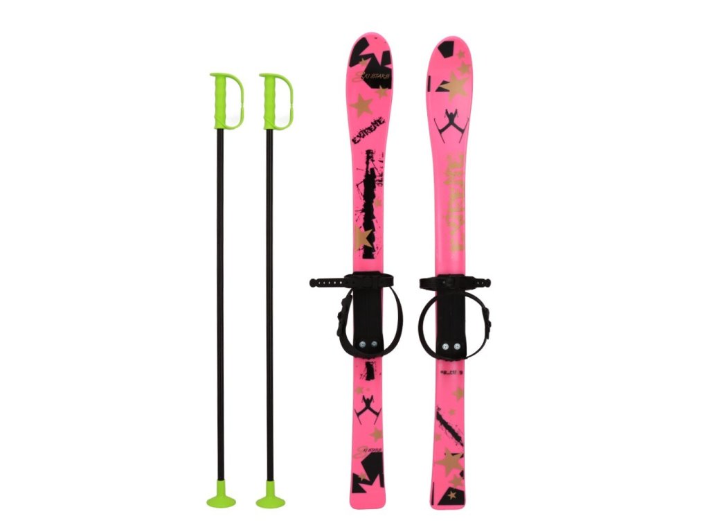 Detské lyže s viazaním a palicami Baby Mix 90 cm ružové