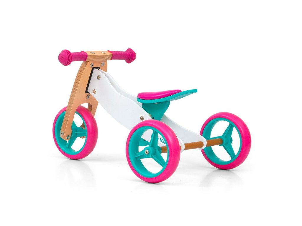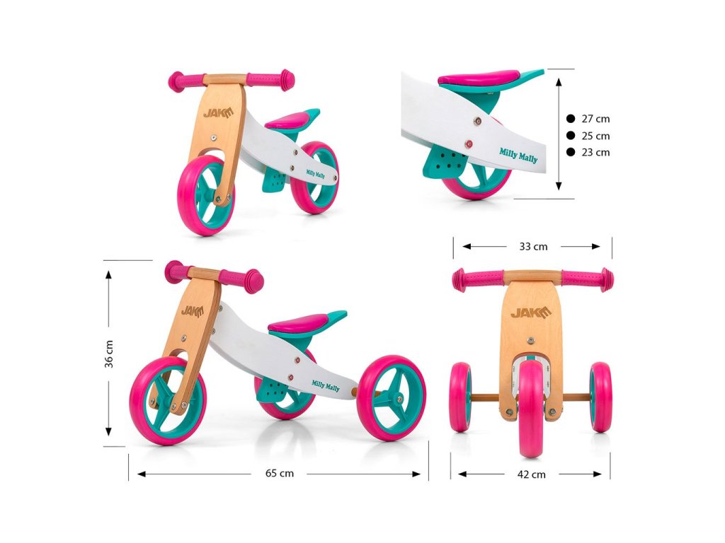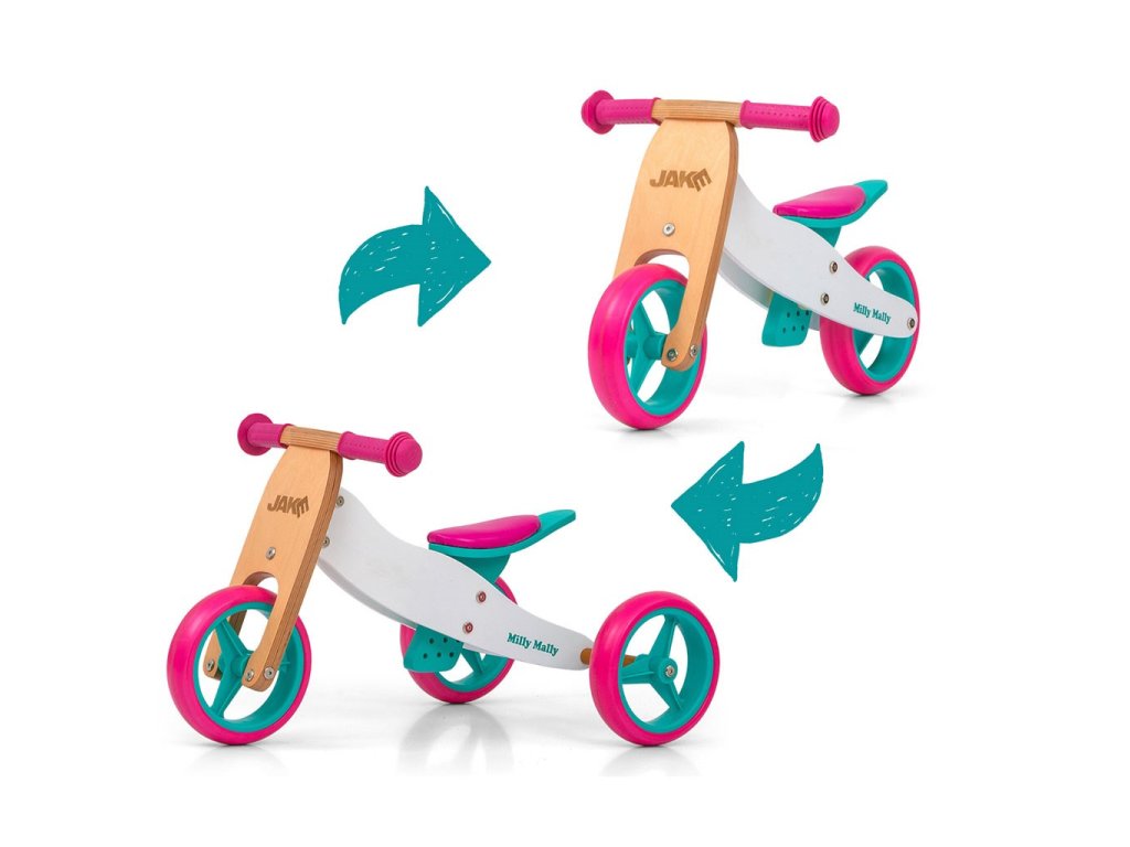 Detské multifunkčné drevené odrážadlo Milly Mally JAKE je ideálne pre deti, ktoré sa práve začínajú učia jazdiť na bicykli a pritom nie sú schopné udržať rovnováhu na dvoch kolesách. Výhodou odrážadla JAKE je, že z trojkolky sa ľahko stane odrážadlo na dvoch kolesách.Charakteristika: