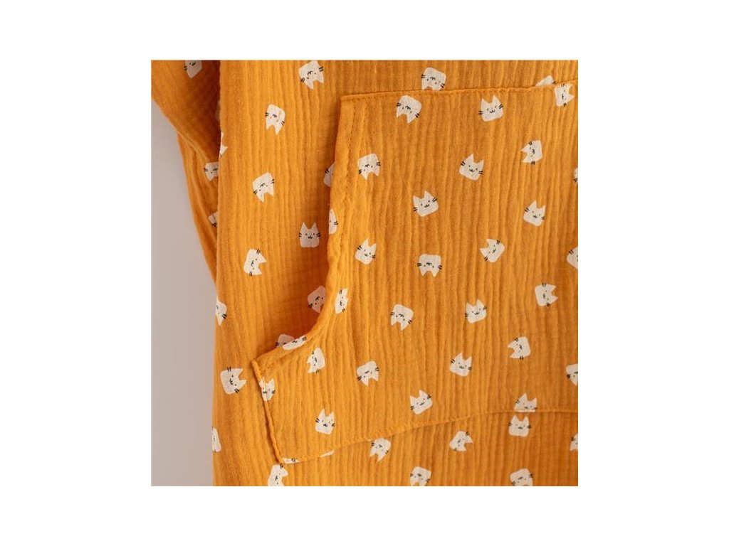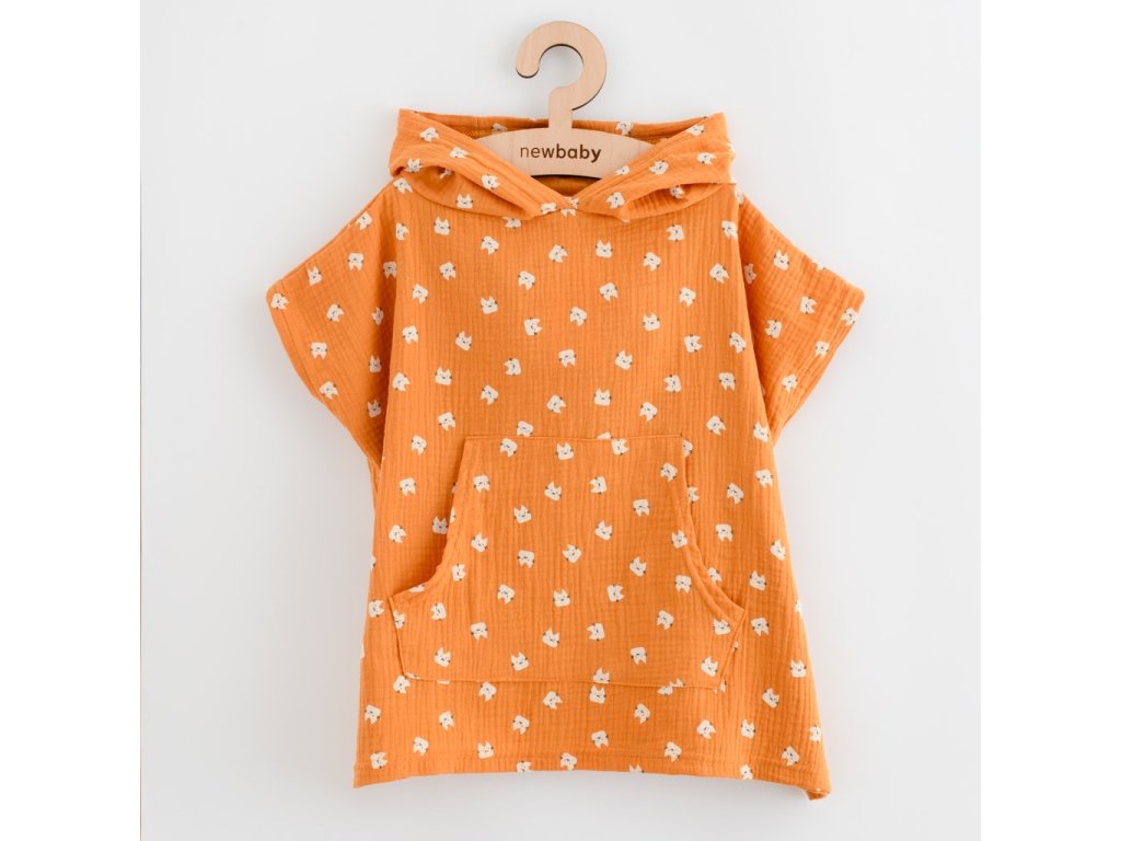 Detské mušelínové pončo New Baby Feeling. Štýlové pončo nielen na doma, ale aj na plávanie pri bazéniku, alebo pri vode. Mušelínové pončo je vďaka materiálu ľahké, vzdušné a krásne savé. Pončo bude chrániť dieťa pred chladom a poslúži aj ako jemná osuška. Vďaka voľnému jedinečnému strihu a roztomilým uškám urobí deťom veľkú radosť. Svojim strihom s dieťatkom porastie a padne na každú postavu. Vyzerá skvele a je možné využívať po celý rok. Pre ľahšie obliekanie a vyzliekanie sú na boku cvočky. Tým vznikne možnosť urobiť otvor na ruku, alebo nechať strih voľný. Vpredu je praktické vrecko, ktoré sa deťom určite bude veľmi hodiť.