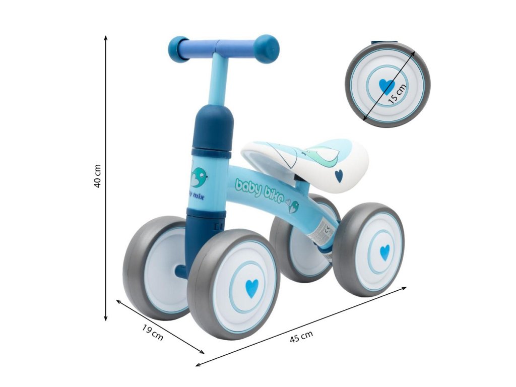 Detské odrážadlo Baby Bike je určené tým najmenším pretekárom a pretekárkam. Vďaka špeciálne navrhnutému rámu a veľmi nízkej hmotnosti je Baby Bike vhodný pre deti od 1 roku. Je ideálny v čase, keď sa dieťa učí držať rovnováhu a koordináciu pohybov celého tela. Je tou najlepšou alternatívou pre bicykel s bočnými kolieskami, pretože neskoršia jazda na klasickom kolese bude oveľa jednoduchšia. Vďaka použitiu dvojitých kolies a pevného oceľového rámu je stabilný a bezpečné. Penové, ergonomicky tvarované sedadlo je ozdobené pekným obrázkom a je príjemne mäkučké. Baby Bike má blokádu riadidiel, takže sa nemusíte obávať nekontrolovaného pádu, keď sa váš malý športovec začne učiť manévrovať. Dvojité penové kolieska skvele absorbujú nerovnosti a poskytujú perfektnú priľnavosť na všetkých povrchoch.