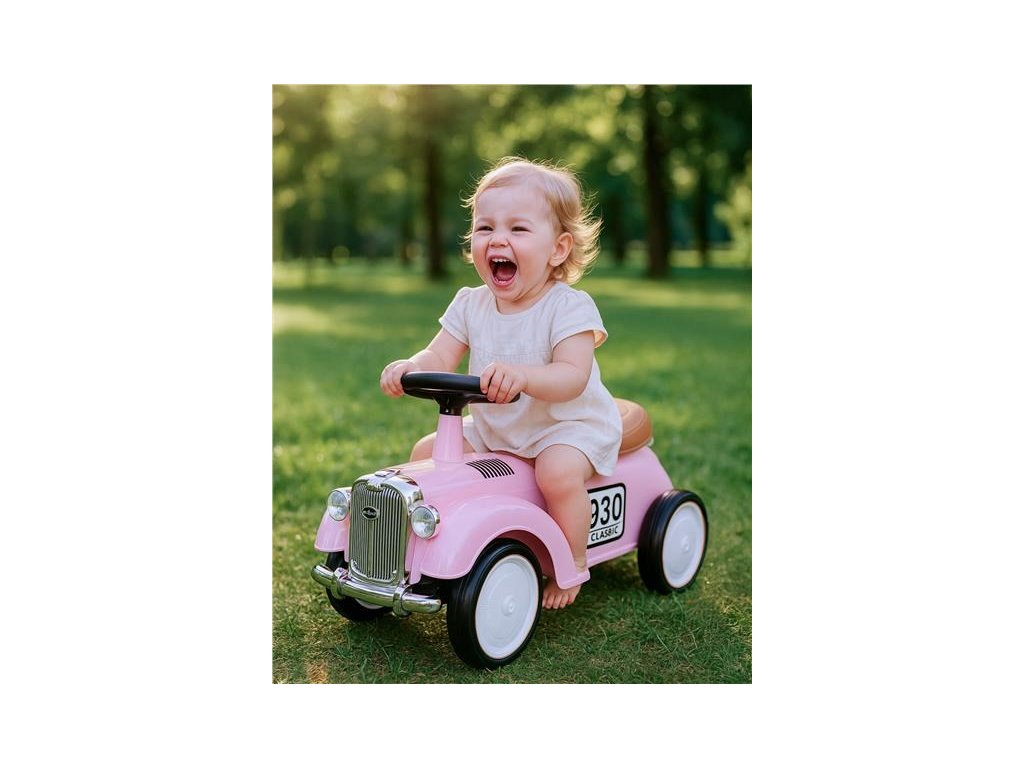 Detské odrážadlo Retro pozýva malých cestovateľov na retro jazdu. Upúta svojimi oku lahodiacimi farbami. Je bohato vybavené. Toto autíčko má volant so zvukom a tvarované sedadlo. Poskytne vášmu dieťaťu skvelú zábavu pri riadení a rozvíja jeho zmysel pre rovnováhu a všeobecné motorické zručnosti. Autíčko má ľahkú plastovú konštrukciu a ergonomické tvary. Otočný volant autíčka Retro umožňuje náročné manévre doma aj na prechádzkach. Kolesá tohto krásneho vozidla sú vyrobené z mäkkej peny EVA. Retro autíčko môže vaše dieťa používať ako svoje prvé vozidlo so skutočným volantom a klaksónom, ďalej ako kočík s otvoreným úložným priestorom na hračky (malý kufor), imitáciou palivovej nádrže na zadnej časti vozidla a prednou časťou auta - mriežkou v striebornej farbe. Vozítko Royce je určené všetkým deťom, ktoré vedia samostatne sedieť. Vozítko je možné používať v interiéri aj exteriéri a spríjemní vášmu dieťaťu čas strávený na prechádzke.