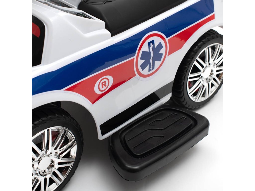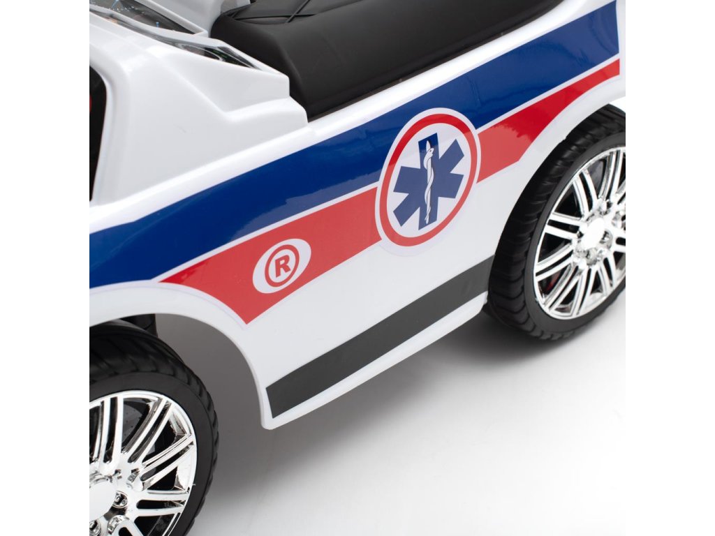 Detské odrážadlo so zvukom a vodiacou tyčou Baby Mix AMBULANCIA biele