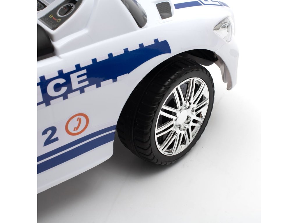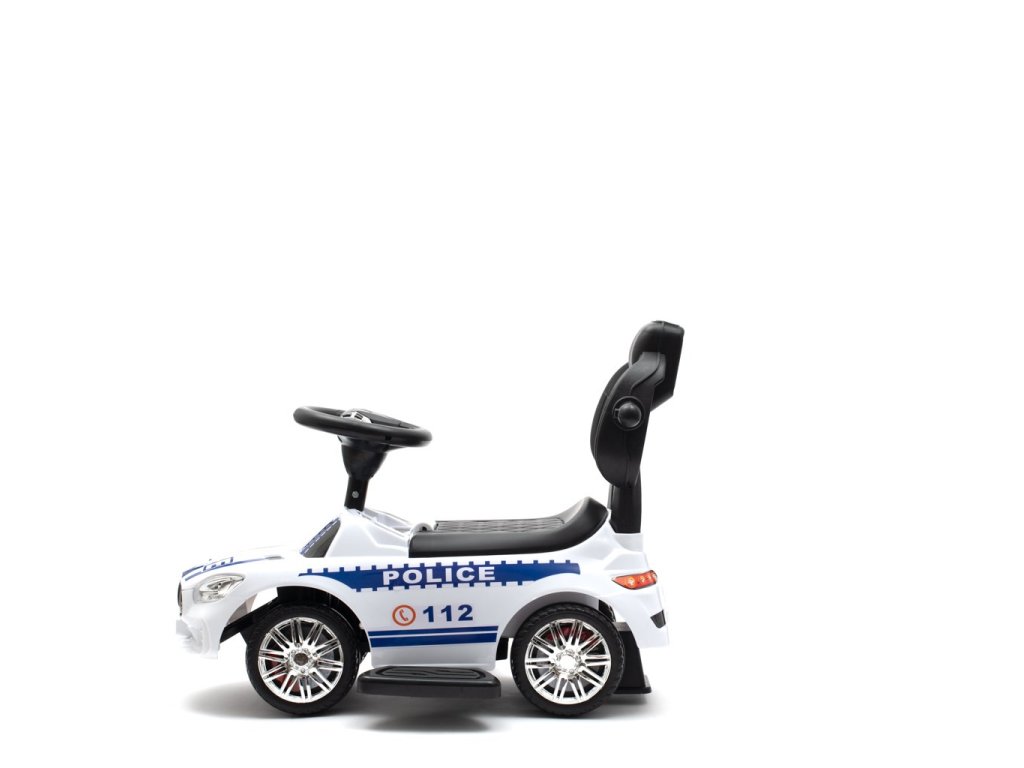 Policajné autíčko jazdítko Baby Mix je skutočnou lahôdkou pre všetkých malých strážcov zákona. Dokonalé spracovanie a detaily ako kolesá, svetlá alebo tvar karosérie, priťahujú pozornosť všetkých a rýchlo sa stanú obľúbenou hračkou doma aj na prechádzke. Je vyrobené z kvalitných materiálov a je vybavené zvukovým panelom. Jazdítko pomáha rozvíjať motorické schopnosti dieťaťa a zaručuje množstvo zábavy a radosti. Vďaka špeciálnej blokáde v zadnej časti je váš pretekár chránený proti prevráteniu. Vodiacu tyč, opierky na ruky a podnožky je možné zložiť, a tým dieťa využije autíčko ako klasické odrážadlo.