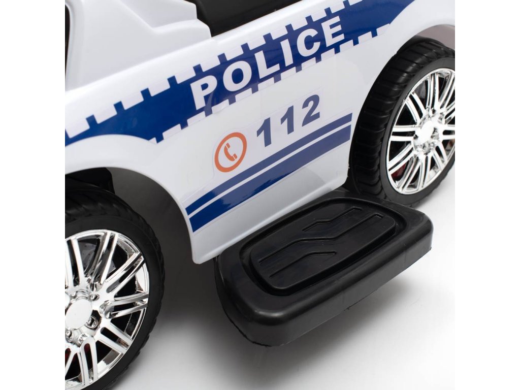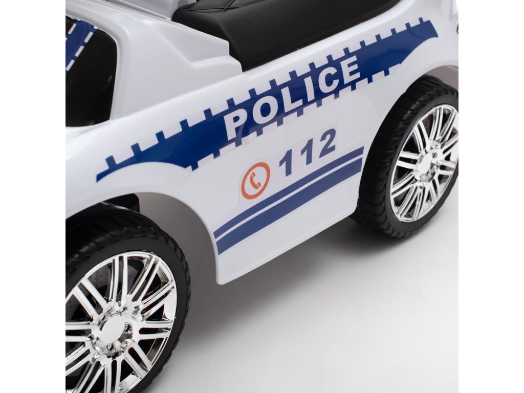 Detské odrážadlo so zvukom a vodiacou tyčou Baby Mix POLICE biele