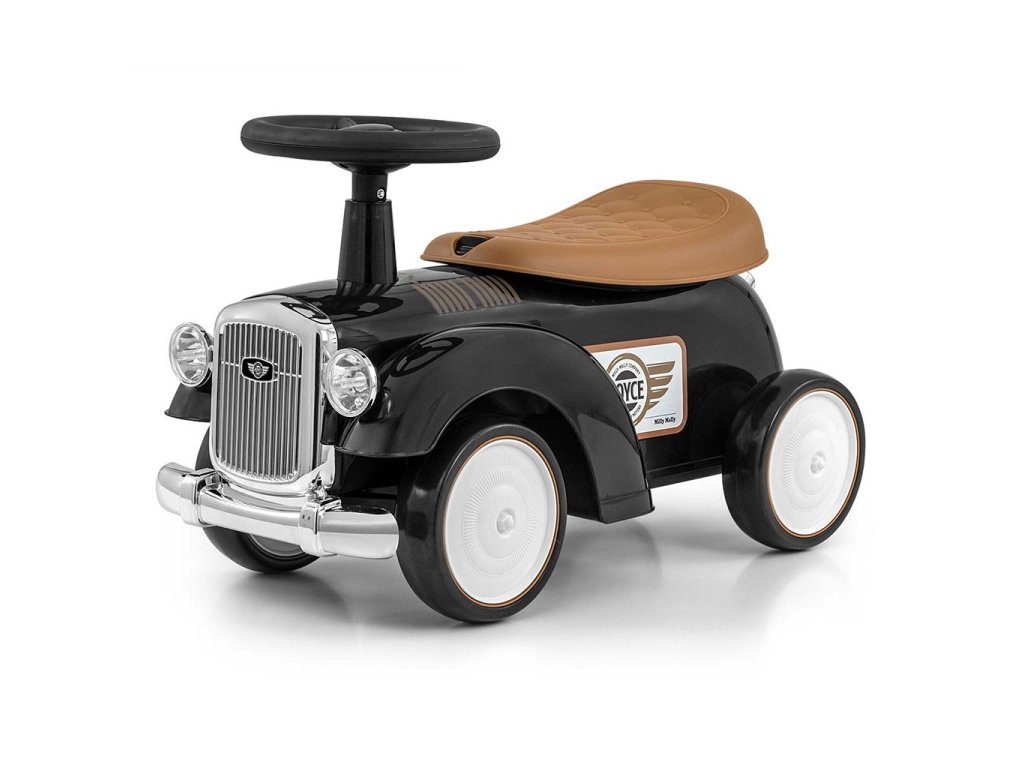 Vintige odrážadlo Royce od Milly Mally pozýva malých cestovateľov na retro jazdu. Upúta svojimi oku lahodiacimi farbami. Je bohato vybavené. Toto autíčko má volant so zvukom a tvarované sedadlo. Poskytne vášmu dieťaťu skvelú zábavu pri riadení a rozvíja jeho zmysel pre rovnováhu a všeobecné motorické zručnosti. Autíčko má ľahkú plastovú konštrukciu a ergonomické tvary. Otočný volant nášho jazdca Royce umožňuje náročné manévre doma aj na prechádzkach. Kolesá tohto krásneho vozidla sú vyrobené z mäkkej peny EVA. Retro autíčko môže vaše dieťa používať ako svoje prvé vozidlo so skutočným volantom a klaksónom, ďalej ako kočík s otvoreným úložným priestorom na hračky (malý kufor), imitáciou palivovej nádrže na zadnej časti vozidla a prednou časťou auta - mriežkou v striebornej farbe. Logo ROYCE dodáva tomuto vozidlu na estetike a prestíži. Záverečnou bodkou za vozidlom Royce je jeho darčeková krabička, ktorá je zachovaná v charaktere retro vozidiel z počiatkov automobilového priemyslu. Vozítko Royce je určené všetkým deťom, ktoré vedia samostatne sedieť. Vozítko je možné používať v interiéri aj exteriéri a spríjemní vášmu dieťaťu čas strávený na prechádzke.
