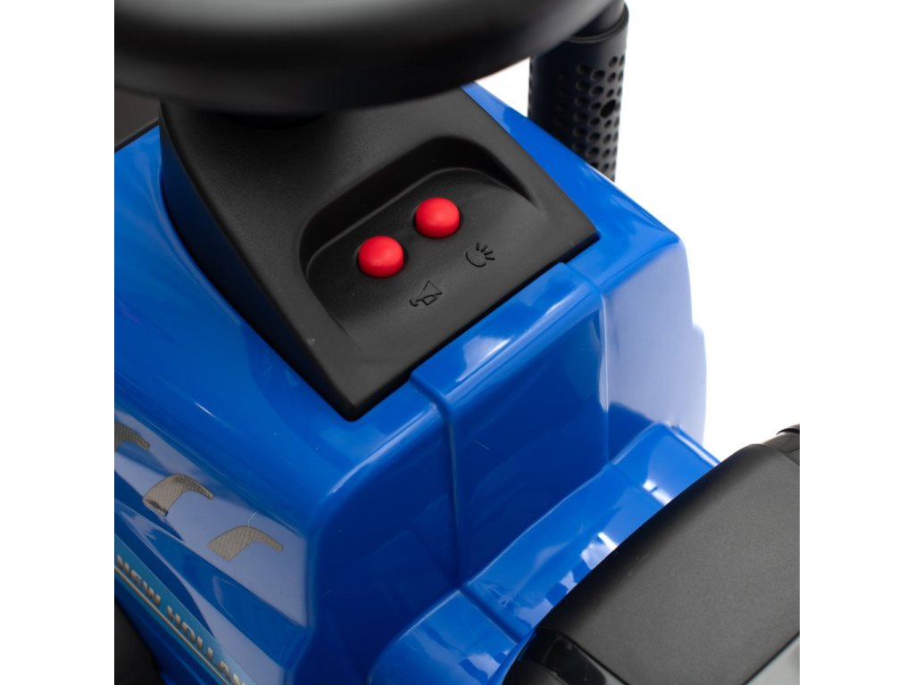 Detské odrážadlo traktor s vlečkou a náradím Baby Mix New Holland modrý