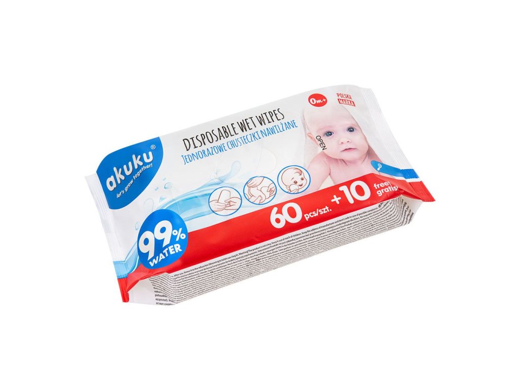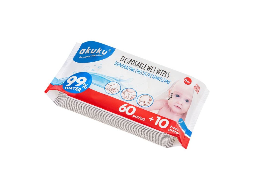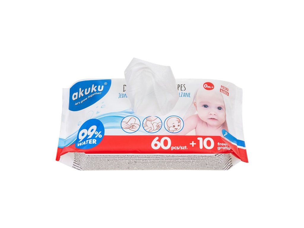 Detské vlhčené obrúsky Akuku 99% vody 60 + 10 ks ZADARMO