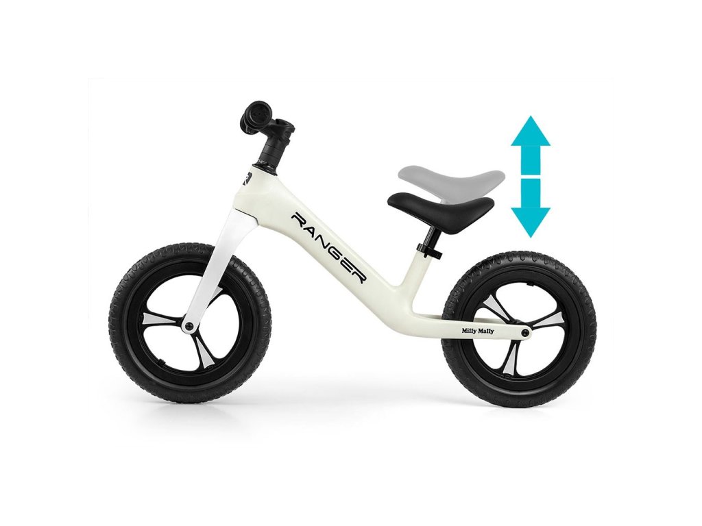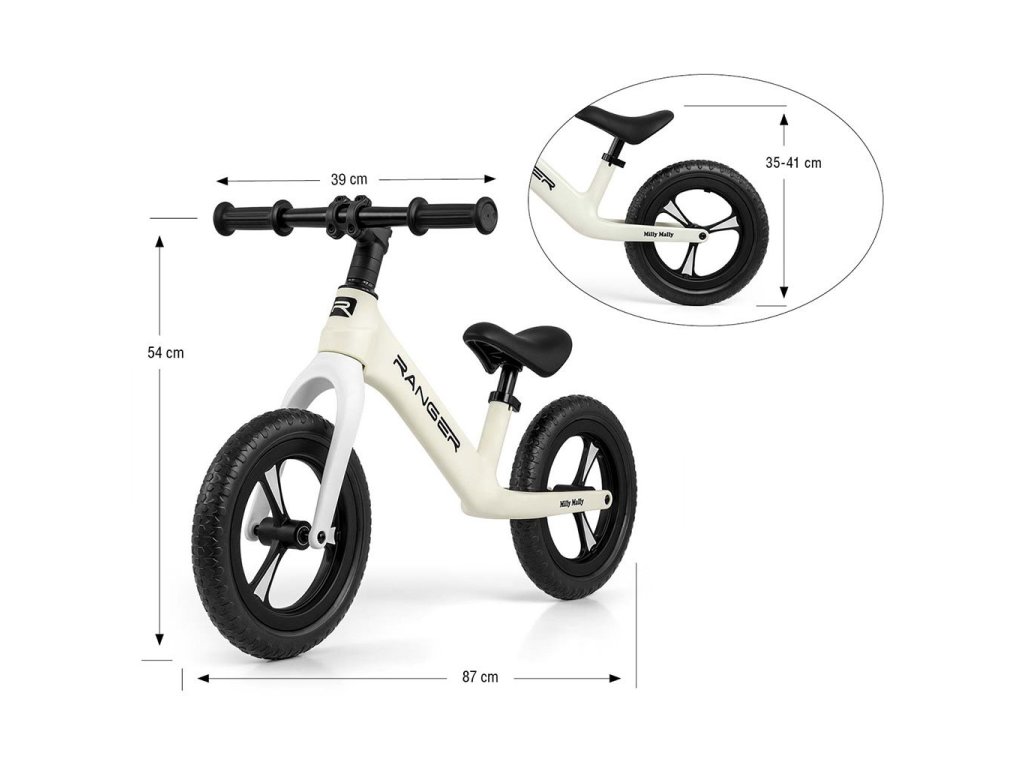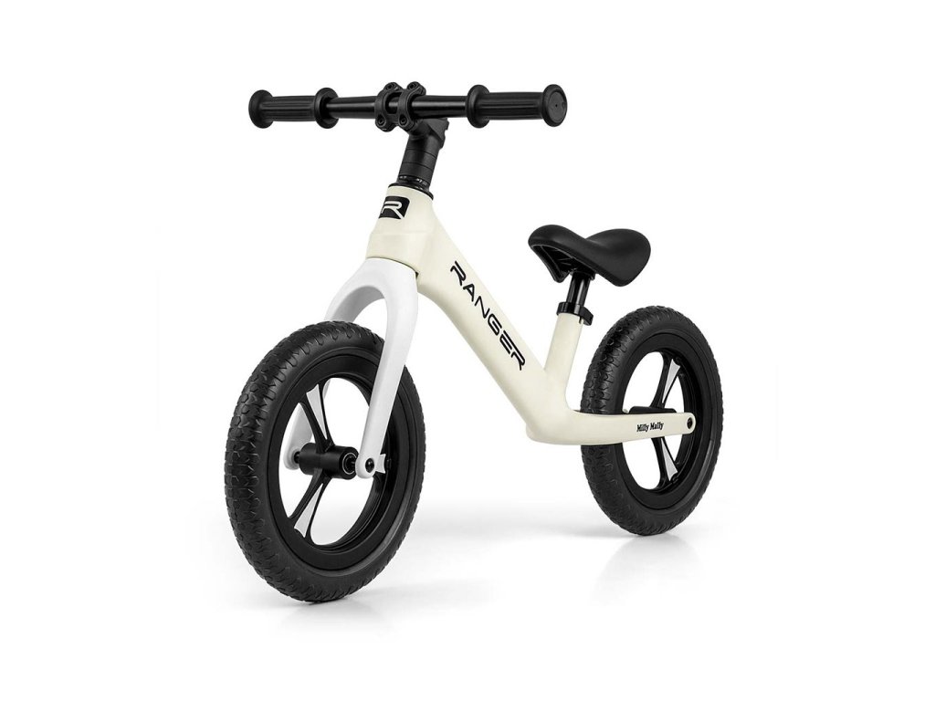 Odolná a vyrobená najnovšou technológiou EVA peny, 12" kolesá odolné proti prepichnutiu, ktoré nie je potrebné nafukovať, sú bezúdržbové. Ergonomické, výškovo nastaviteľné sedlo s mäkkou výplňou zaisťuje dieťaťu pohodlie pri jazde a rastie s dieťaťom. Kolo Ranger má riadidlá v guličkových ložiskách, rovnako kolesá s guličkovými ložiskami.Protišmykové rukoväte z mäkkej gumy zaisťujú pevné uchopenie a pohodlné vedenie.