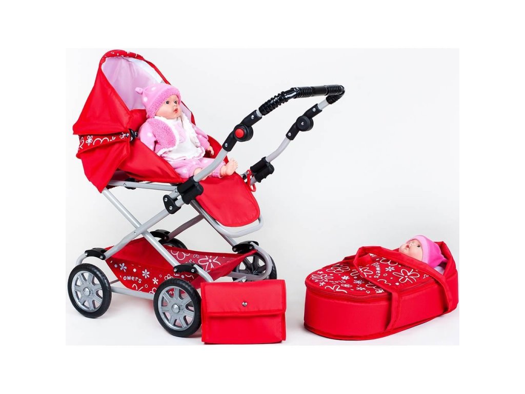 Krásny detský kočík 2v1 New Baby Monika pre malé slečny. Kočík má veľmi kvalitnú, kovovou konštrukciou. Hlboký kočík je možné upraviť aj na športové. Korbička je upevnená v smere jazdy a má tašku, ktorú je možné použiť na prenášanie bábiky. Tašká má zapínanie na zips. Kočík má nastaviteľnú rukoväť. Súčasťou je aj taška na drobnosti vo farbe kočíka a veľký nákupný košík. Moderný a ľahký kočík pre bábiky s klasickou odpruženou konštrukciou v pestrých farbách. Kočík má poistku proti samovoľnému zloženiu. Vyrobené v EÚ.