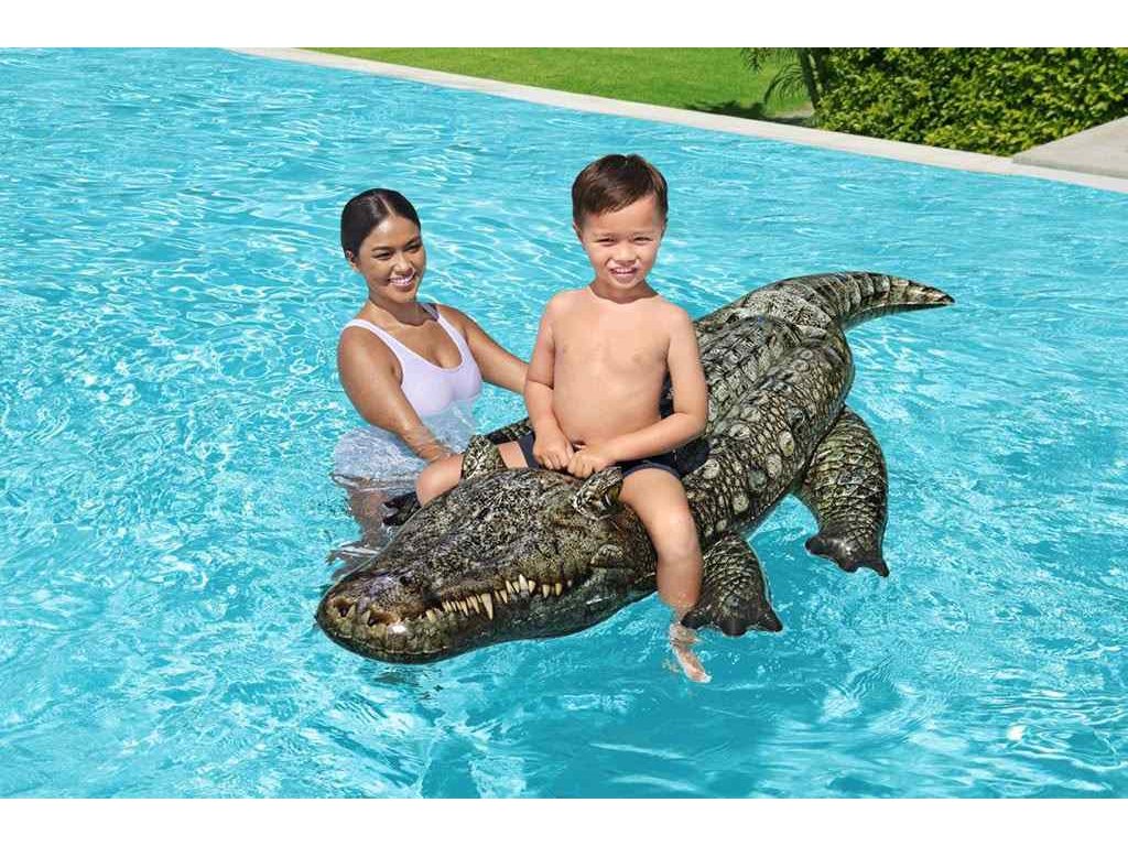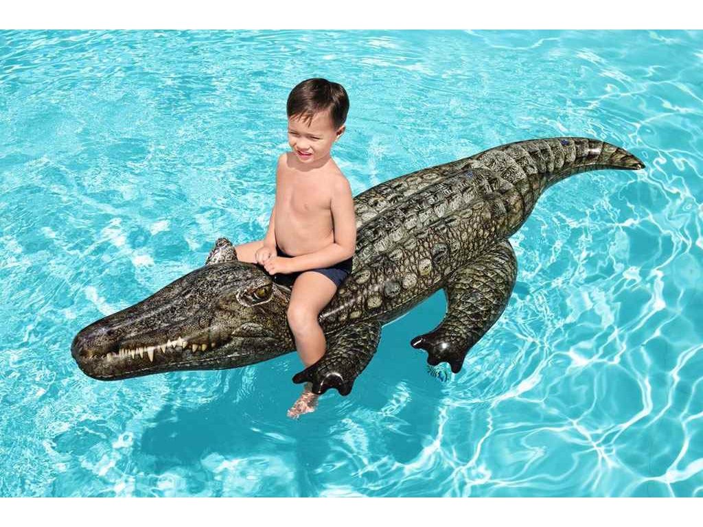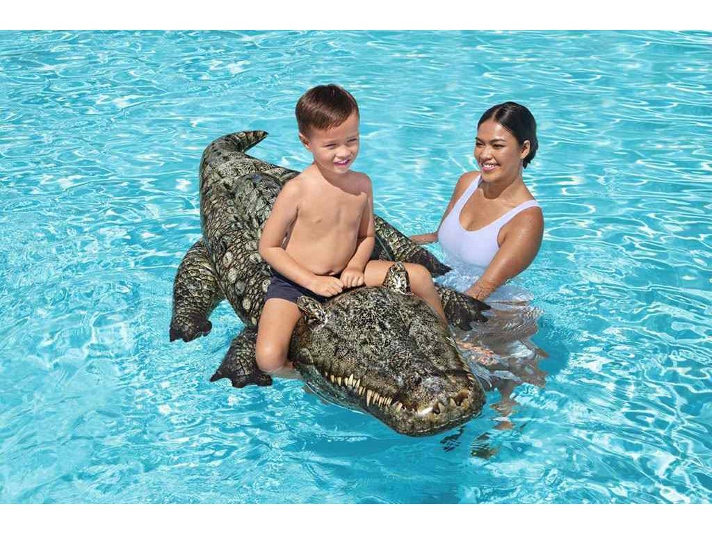 Detský nafukovací krokodíl do vody Bestway. Krokodíl má pevné držadlo pre pohodlné uchytenie. Vaše deti si určite užijú množstvo zábavy a príjemného osvieženia v horúcich letných dňoch. Krokodíly možno používať v bazénoch aj pri mori. Vhodné pre deti od 3 rokov. Zloženie: PVC. Rozmer: cca 193x94 cm.