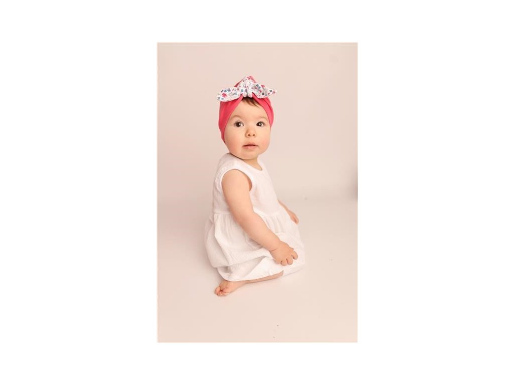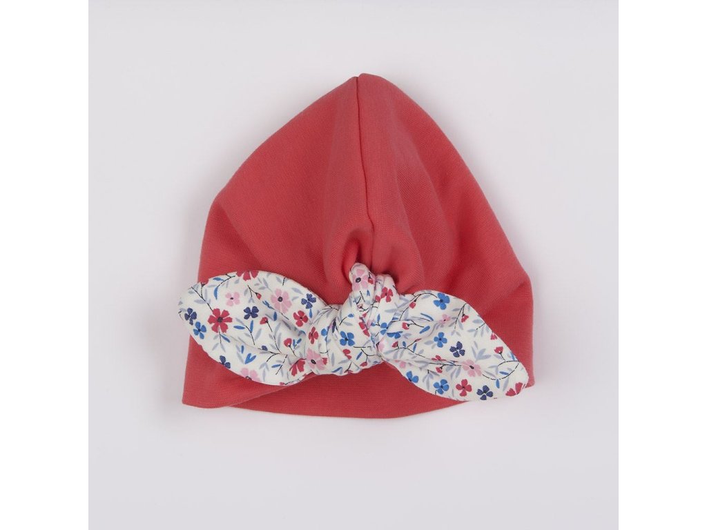 Čiapočka českej značky New Baby For Girls je ušitá v štýle turbanu. Skvelá vychytávka, ktorú je možné využiť ako krásny doplnok, alebo ako praktický kúsok oblečenia. Turban zdobí krásny kvetinový vzor a štýlový uzol, ktorý dodá čiapočke ten správny šmrnc. Ušité z dvojitej látky a tým sú viac chránené ušká pred vetrom. Príjemná na dotyk a krásne sedí na hlavičke. Materiál: 100% bavlna.Dodatočné parametre