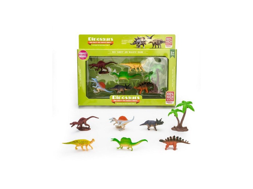 Dinosaury figúrky set 7 ks. Presné rozmery 9x5x1 cm. Obsah balenia - 6 dinosaurov, 1x palma.Dodatočné parametre