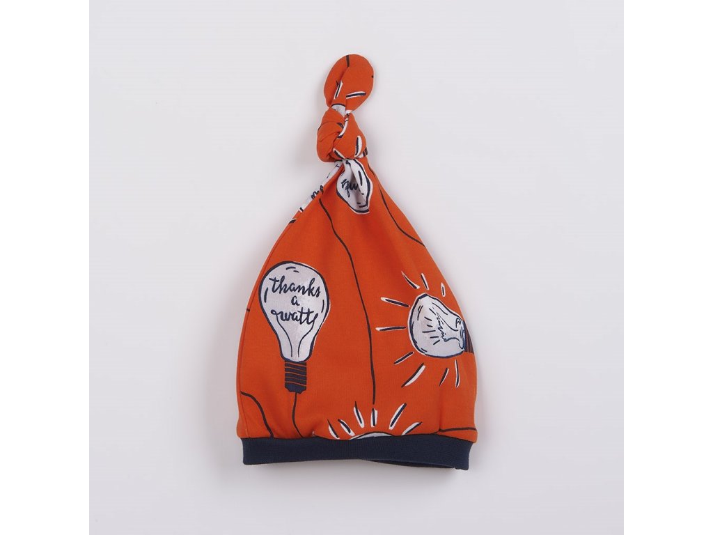 Čiapočka českej značky New Baby Happy Bulbs, s roztomilým uzlíkom v hornej časti. Čiapočka je celopotlačená vtipnými a šťastnými žiarovkami. Skvelá vychytávka, ktorú je možné využiť ako krásny doplnok, alebo ako praktický kúsok oblečenia. Lem je široký a netlačí na hlavičku bábätka. Príjemná na dotyk a krásne sedí na hlavičke. Zloženie: 100% bavlna.Dodatočné parametre