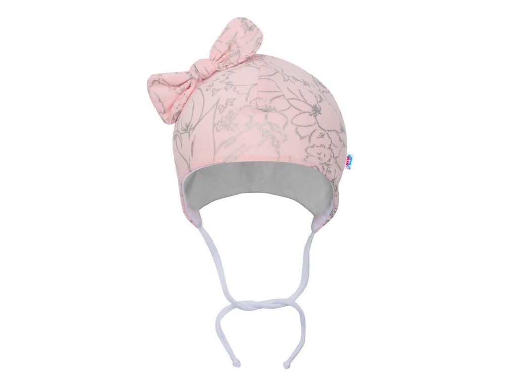 Dojčenská bavlnená čiapočka s mašličkou New Baby NUNU ružová