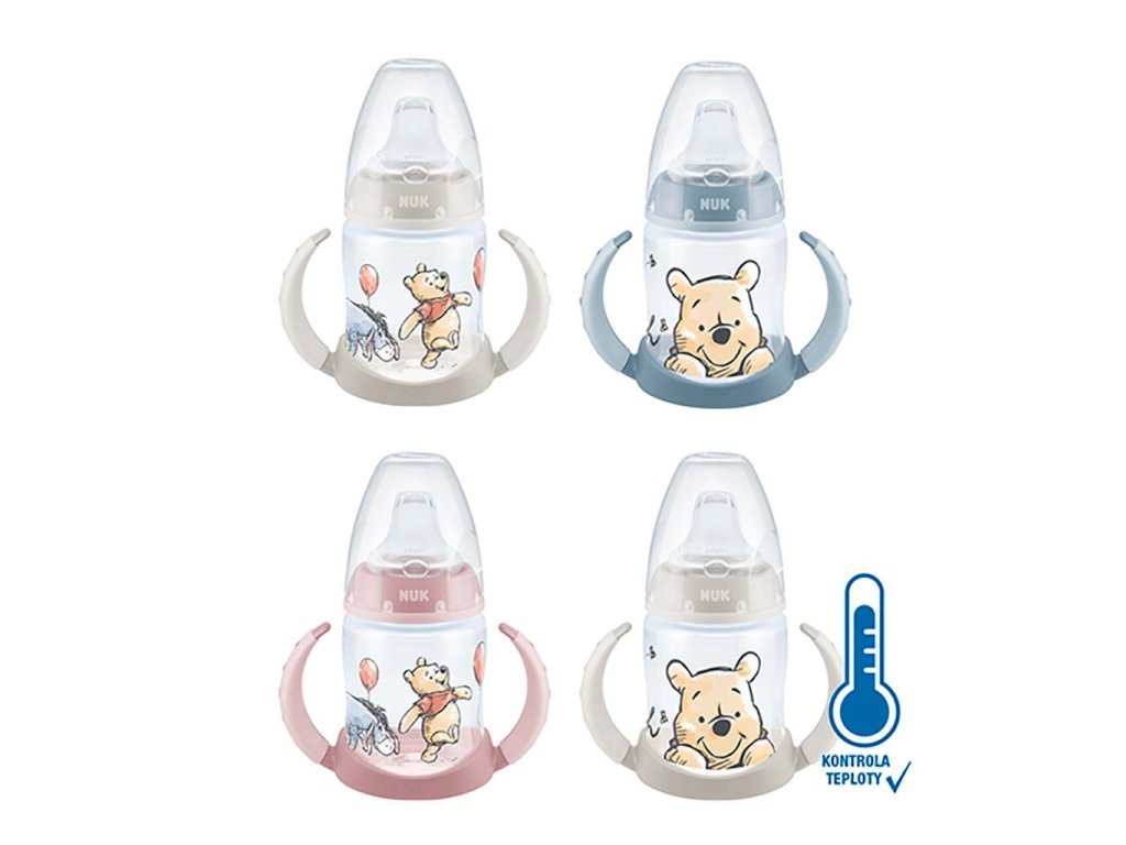 Dojčenská fľaša na učenie NUK Medvedík Pú s kontrolou teploty 150 ml ružová