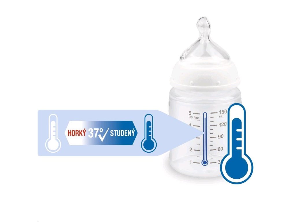 - praktický displej NUK kontroly teploty, ktorý zmení teplotu z modrej (studené) na