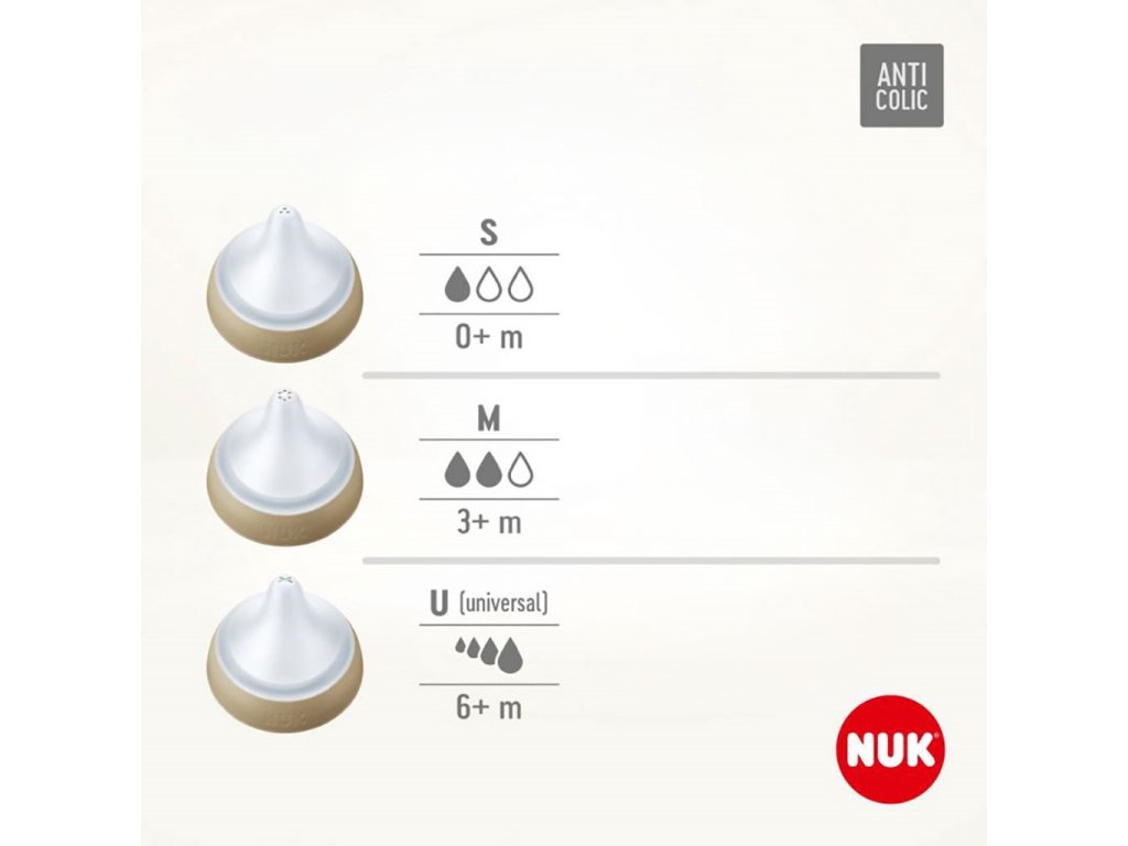 - neobmedzený počet kombinácií – je možné kombinovať so všetkým príslušenstvom odsávačiek materského mlieka NUK Perfect Match a NUK Soft&Easy-nekvapkajúce-vďaka viečku fľašu netečie a cumlík je chránený pred znečistením. Dojčenské fľaše sú v súlade s európskou normou EN14350.