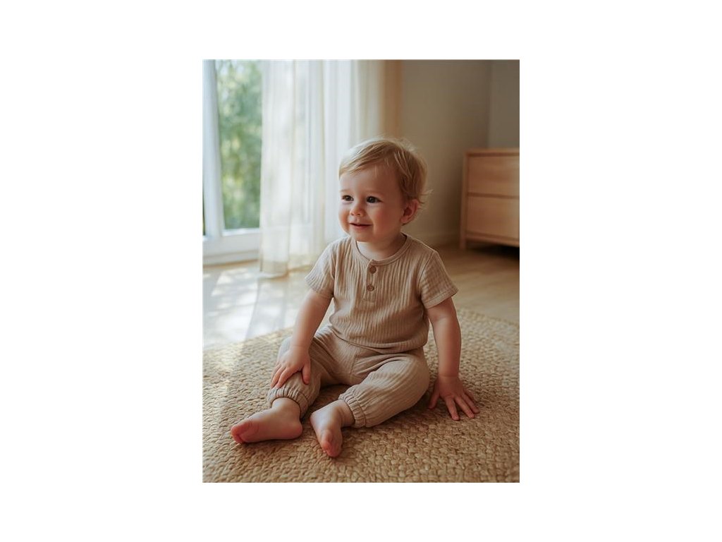 Štýlová a praktická 2-dielna detská súprava českej značky New Baby. Mušelínová súpravička sa skladá z trička s krátkym rukávom a nohavíc. Veľmi praktický set pre deti v jarných aj letných dňoch. Mušelínové tričko je veľmi pohodlné už len tým, že je vyrobené z kvalitnej a priedušnej mušelínovej bavlny so zapínaním na cvočky pod krčkom. Mušelínové nohavice s moderným strihom sú veľmi praktické, v páse a na nohavičkách je gumička, ktorá netlačí.