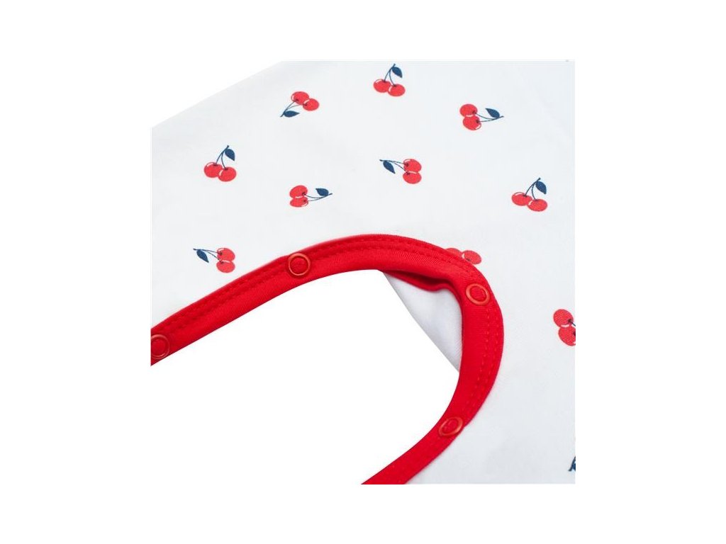 Bavlnené dupačky českej značky New Baby Cherry pre bábätká. Dupačky sú zdobené nášivkou Cherry s čerešničkami. Nášivka je podlepená proti poškriabaniu. Spodná časť je celopotlačená čerešničkami. Okolo krčka a ramienok je farebné lemovanie. Zapínanie na ramienkach a medzi nožičkami. Pre New Baby je veľmi dôležitá spokojnosť zákazníka a práve preto vám ponúkame našu kvalitnú dievčenskú letnú kolekciu Cherry. Zloženie: 100% bavlna.Dodatočné parametre