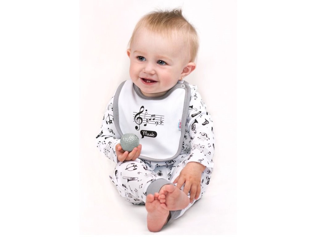 Bavlnené dojčenské polodupačky New Baby Music pre bábätká. Polodupačky sú jednofarebné s originálnou potlačou notičiek a hudobných nástrojov. Majú široký lem, ktorý netlačí na bruško bábätka. Zapínanie medzi nožičkami na cvočky. Naše originálne a zároveň veselé polodupačky sú vhodné pre chlapcov aj dievčatká. Zloženie: 100% bavlna. Rozmer: obvod okolo pása cca 36 cm, obvod cez boky cca 59 cm, dĺžka od pása cca 48 cm, dĺžka od rozkroku cca 22 cm.Dodatočné parametre