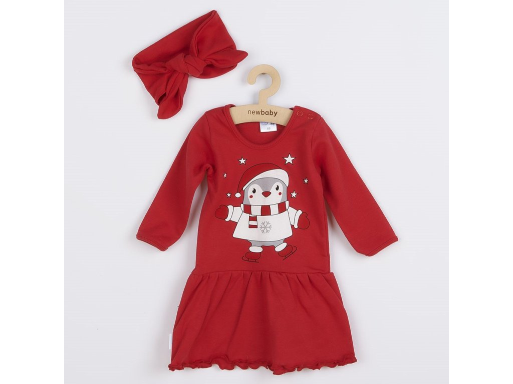 Dojčenské bavlnené šatičky s čelenkou New Baby Winter Penguin