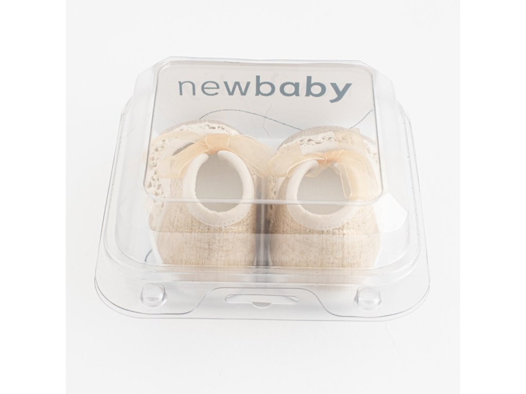 Dojčenské capáčky New Baby pre bábätká. Krásne topánočky sú v štýle dievčenských sandálok s moderným vzhľadom na zaväzovanie. Capáčky priliehajú k nožičke a majú široké vnútro, čo umožňuje voľný pohyb prstov a svalov. Výrobok nie je určený na chôdzu. Sú veľmi ľahké s tenkou syntetickou podrážkou. Zloženie: čipka: 100% polyester. Podrážka: syntetický materiál PVC bez BPA. Dĺžka vnútornej stielky 13 cm. Určené pre deti 12-18 mesiacov. Dodávané v praktickej krabičke. Upozornenie: pod textilnou vložkou sa niekedy nachádza papierová vložka, ktorá drží tvar capáčky. Pred prvým použitím odstráňte túto papierovú vložku.Dodatočné parametre